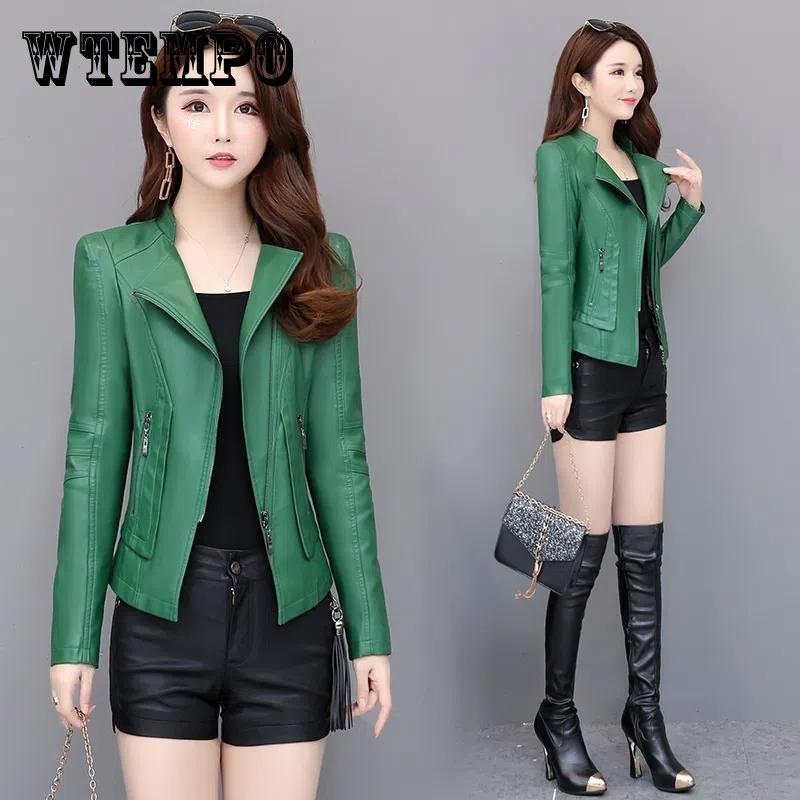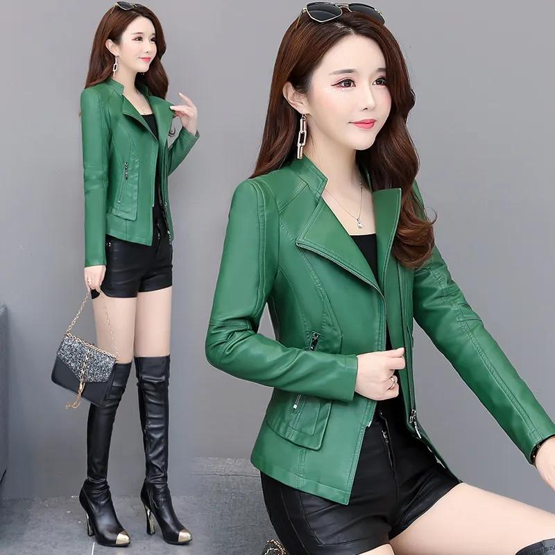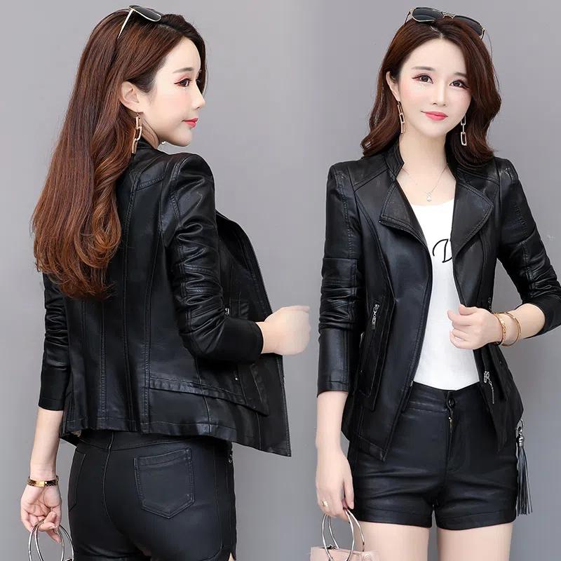 Осенне-зимняя кожаная куртка, женская короткая куртка, тонкая кожаная куртка, пальто большого размера, верх