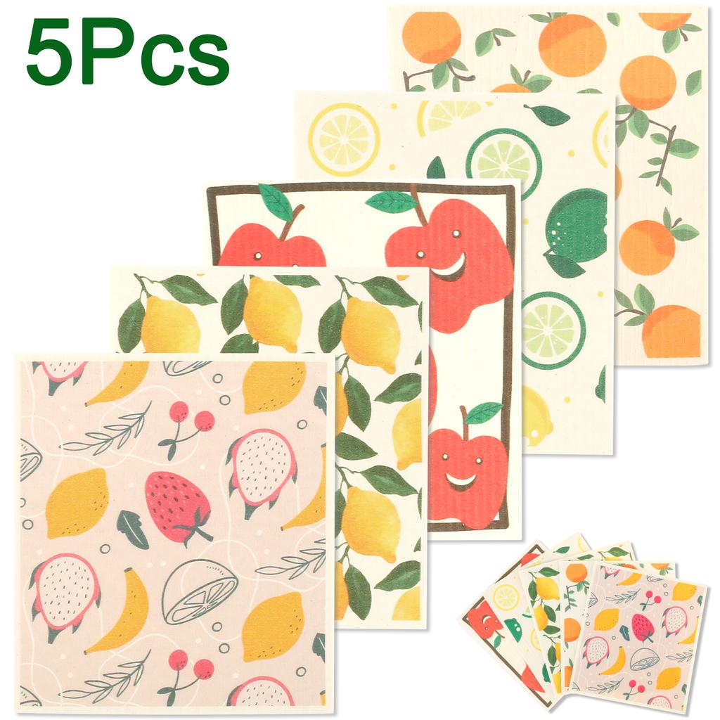 5 шт. кухонных полотенец многоразового использования из экологически чистой микрофибры шведские полотенца для мытья посуды с фруктовым принтом впитывающие полотенца для посуды для уборки дома