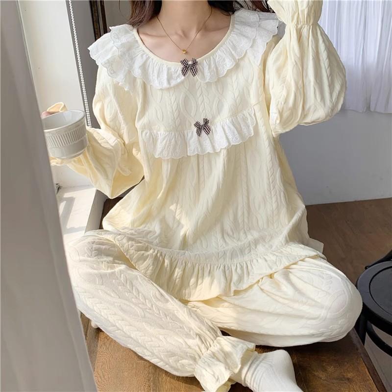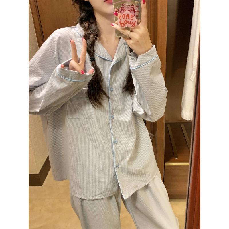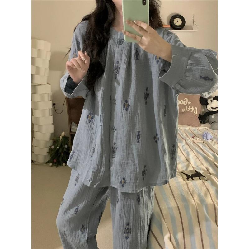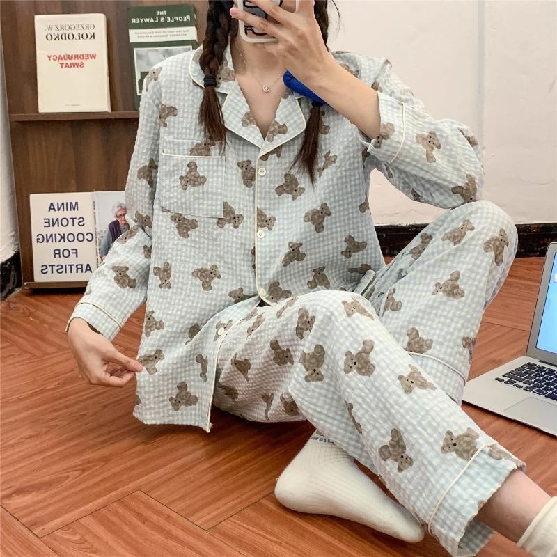 Женская пижама осень-весна с длинным рукавом мягкий комплект одежды для сна сетка мультяшный пижама женский домашний комплект одежды для сна кардиган