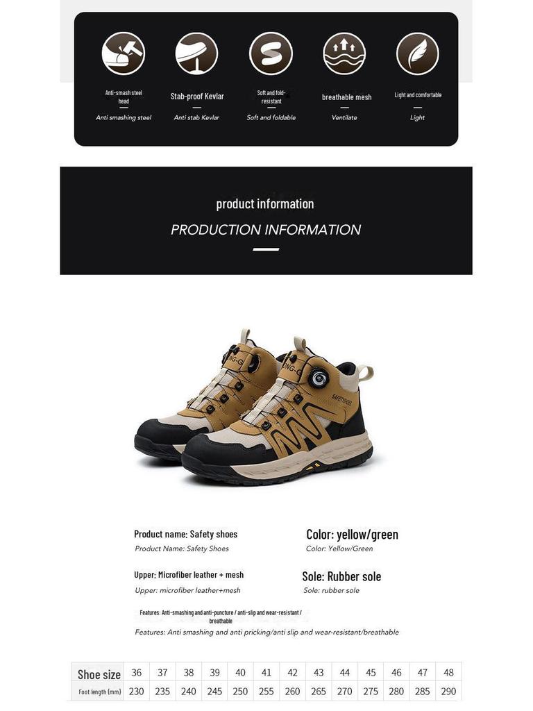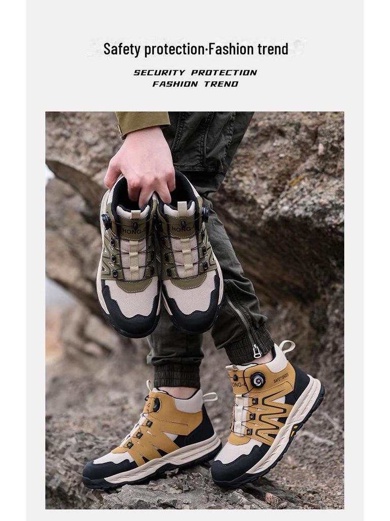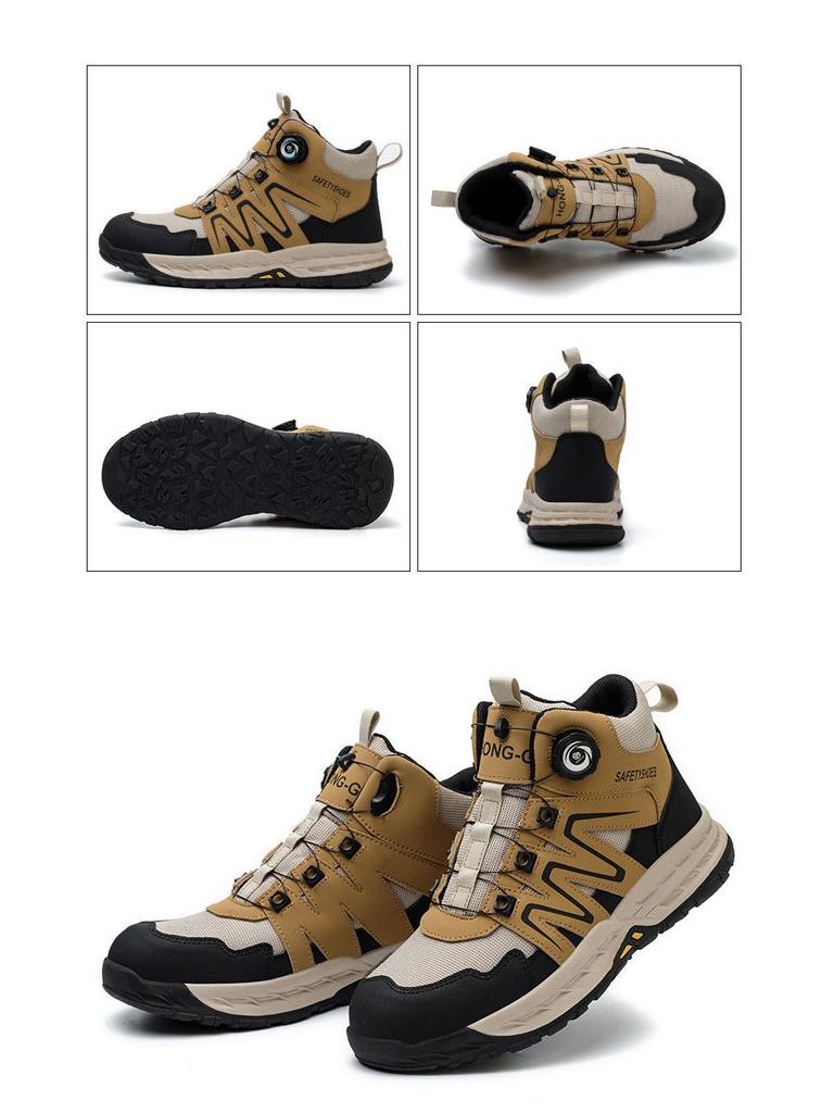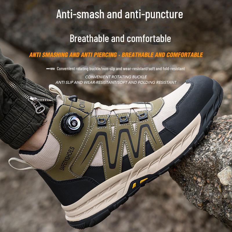Трансграничная защитная обувь со стальным носком: Вращающаяся кнопка, противоударный, противопрокольный, нескользящий, износостойкий