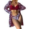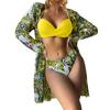 Женский бикини с цветочным принтом, сексуальный быстросохнущий купальник, комплект из 3 предметов