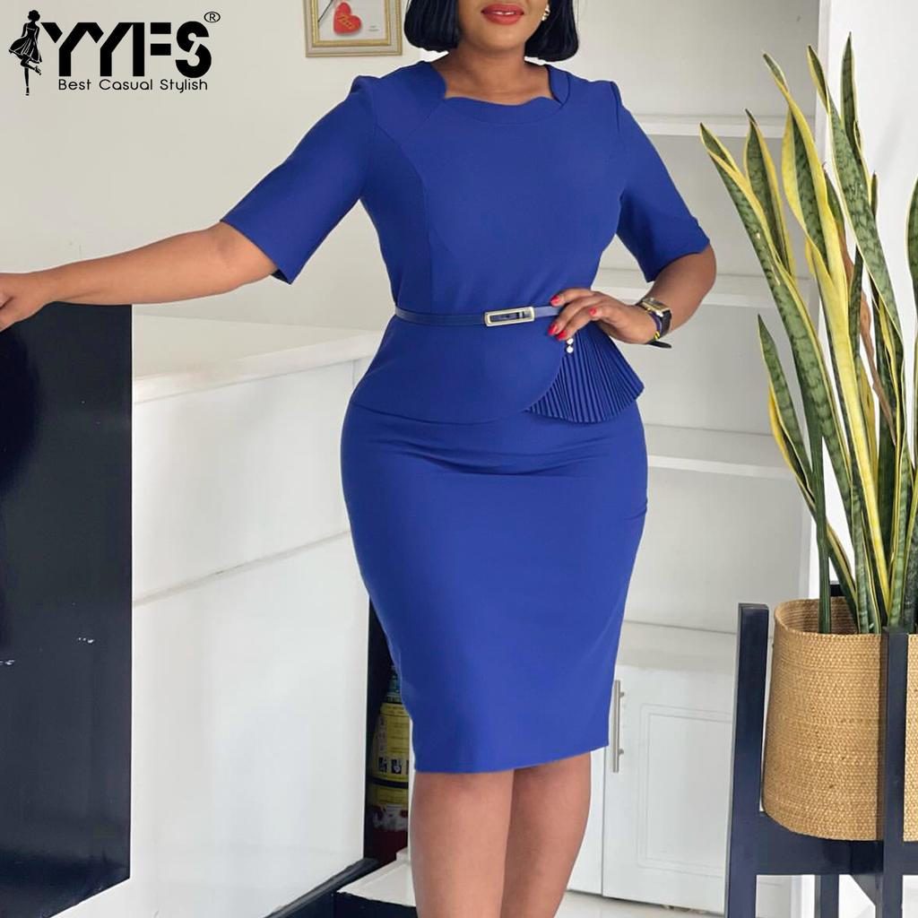 YYFS Женская мода на лето и весну, однотонное повседневное платье с коротким рукавом и квадратным воротником с высокой талией