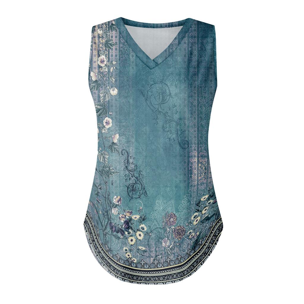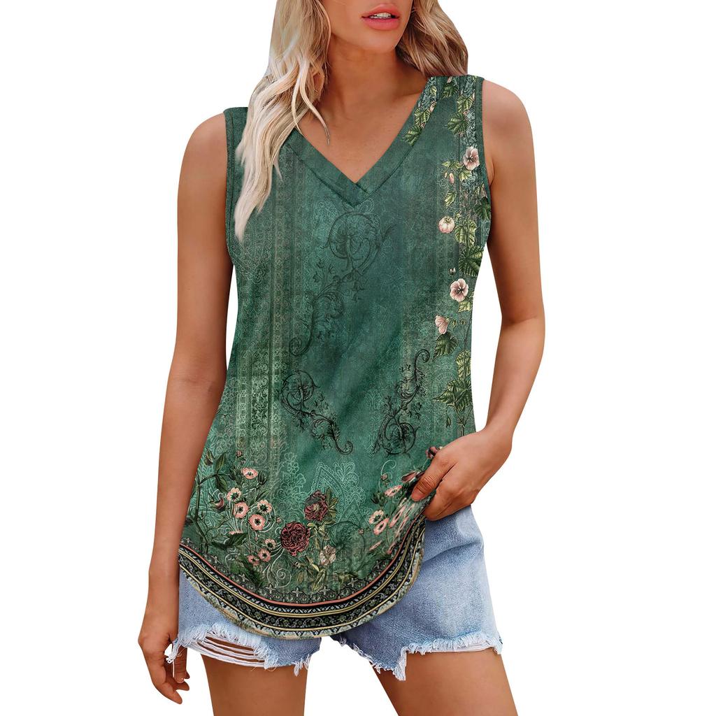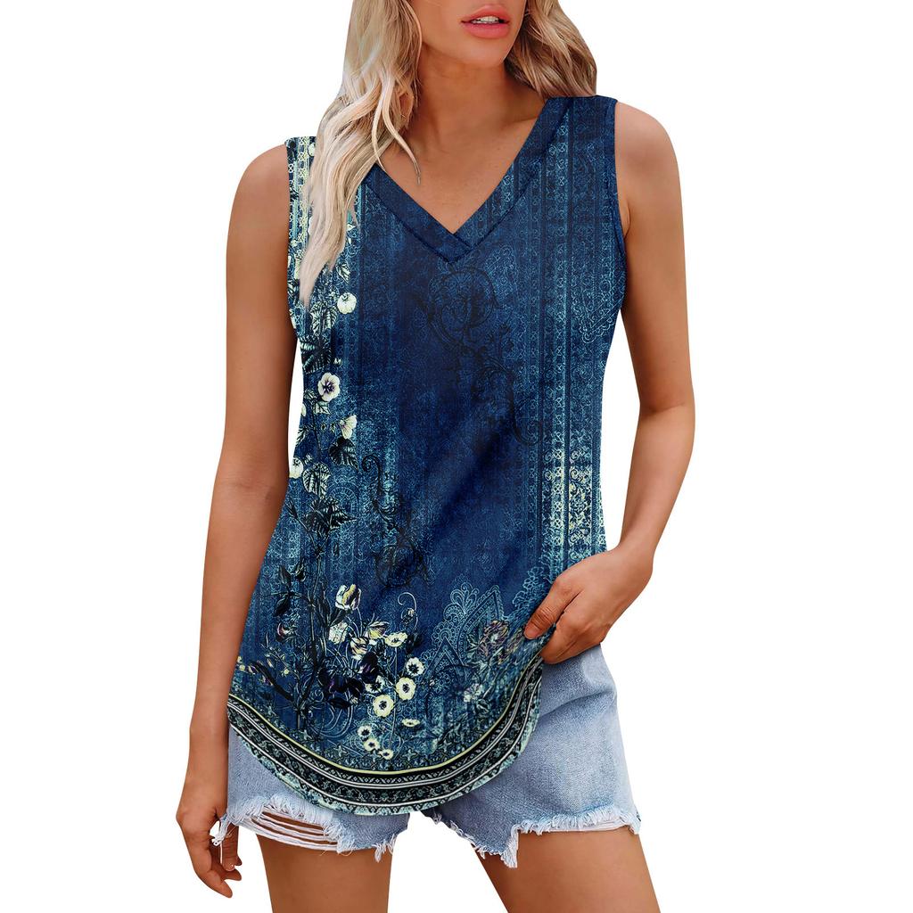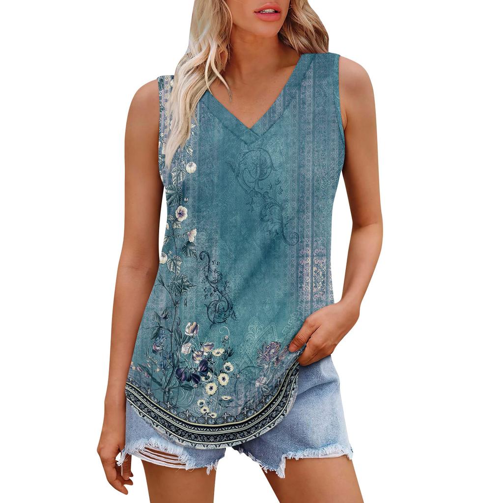 Женская майка с V-образным вырезом и принтом, повседневная майка, свободный крой, топы без рукавов, струящиеся