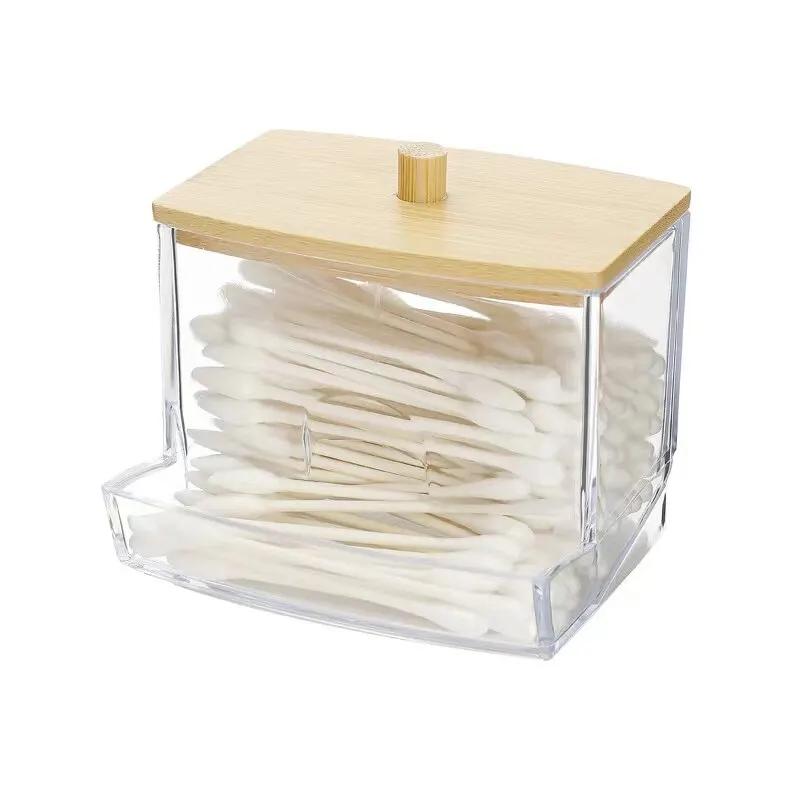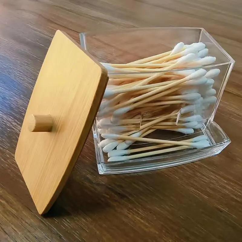 Коробка для ватных тампонов - прозрачная бамбуковая крышка, пыленепроницаемая коробка для хранения зубочисток, ватная палочка, многоцелевой видимый диспенсер