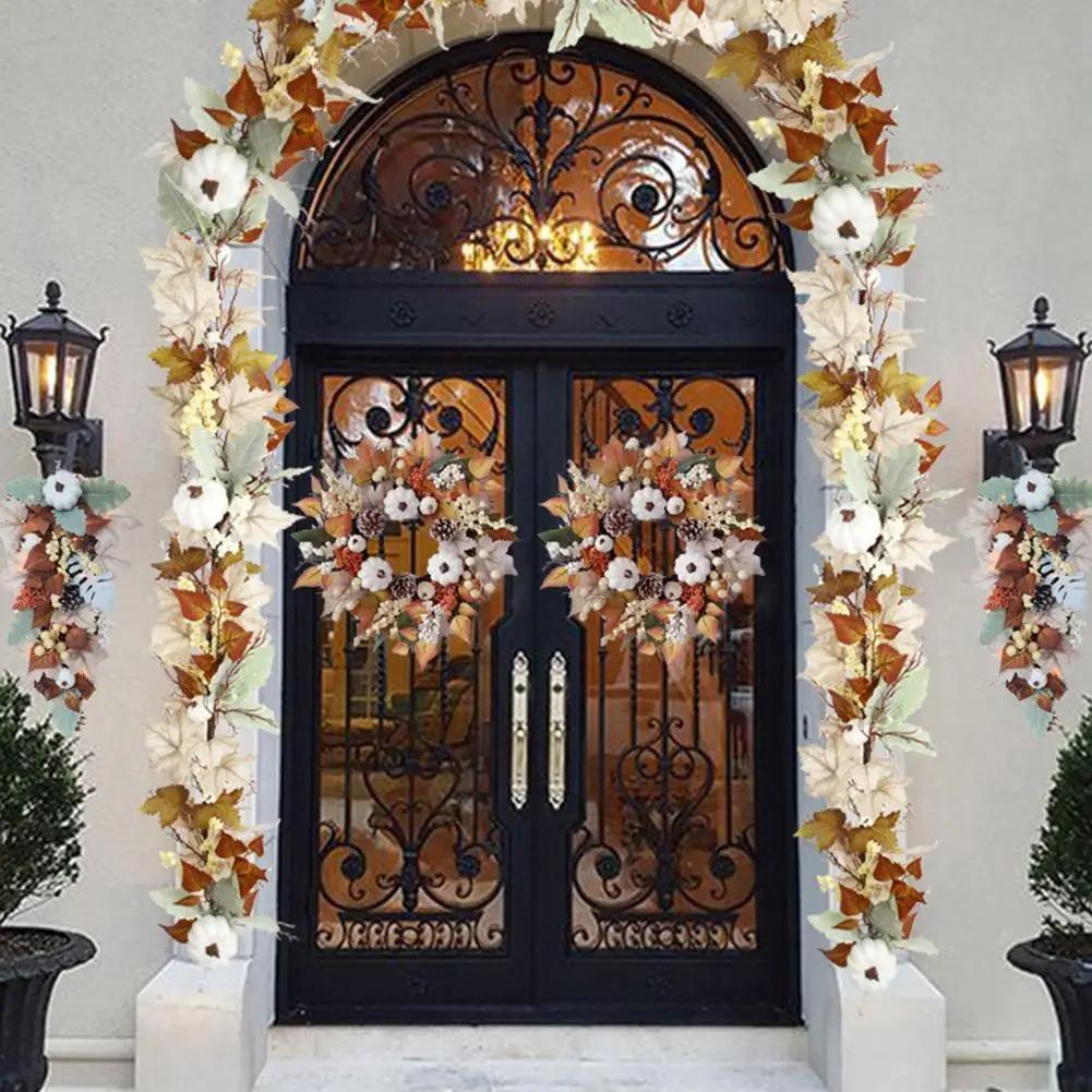 Осенний декор. Осенняя искусственная гирлянда из кленовых листьев, тыквы, ягод, день благодарения, Хэллоуин. Домашняя каминная полка, вечеринка, подвесные принадлежности.