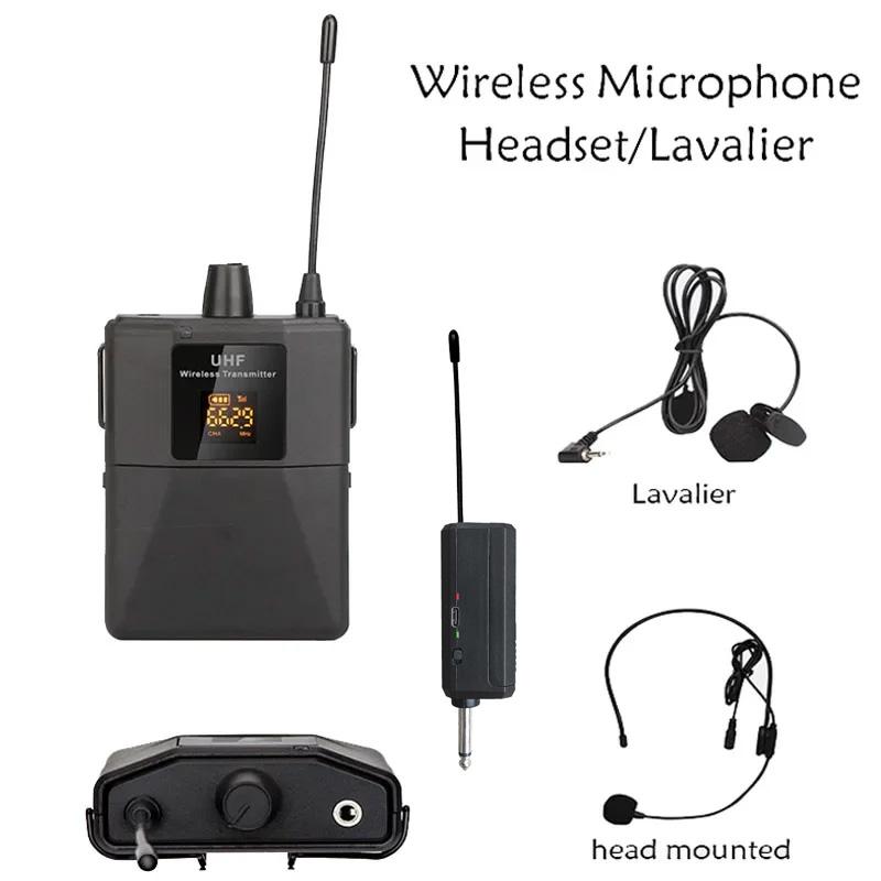 Беспроводная гарнитура UHF с микрофоном-передатчиком и приемником, светодиодным цифровым дисплеем, поясной передатчик для обучения живому выступлению