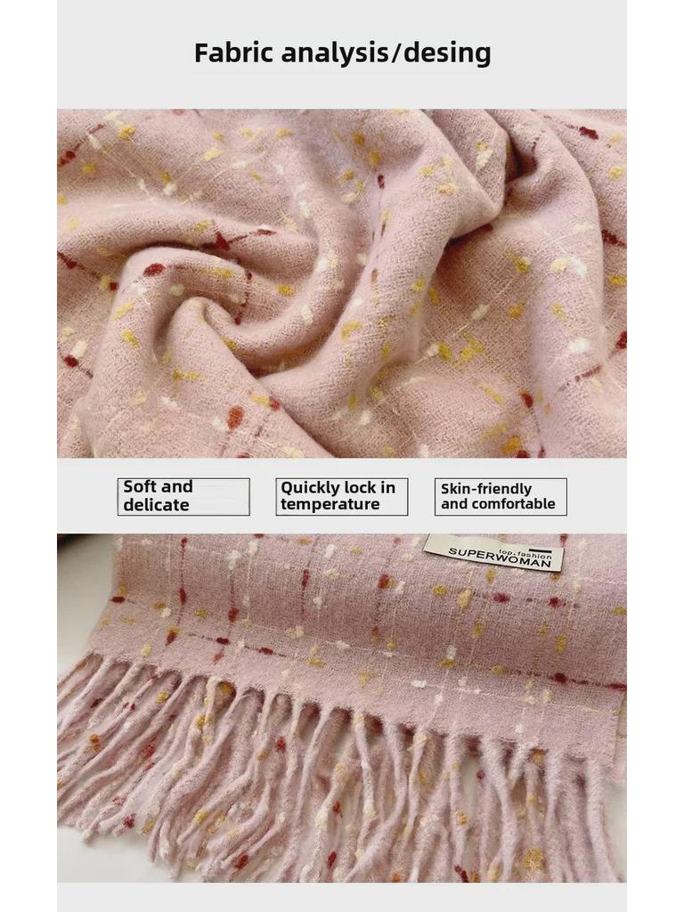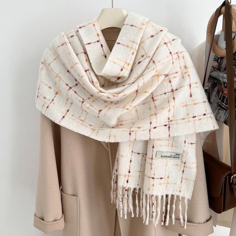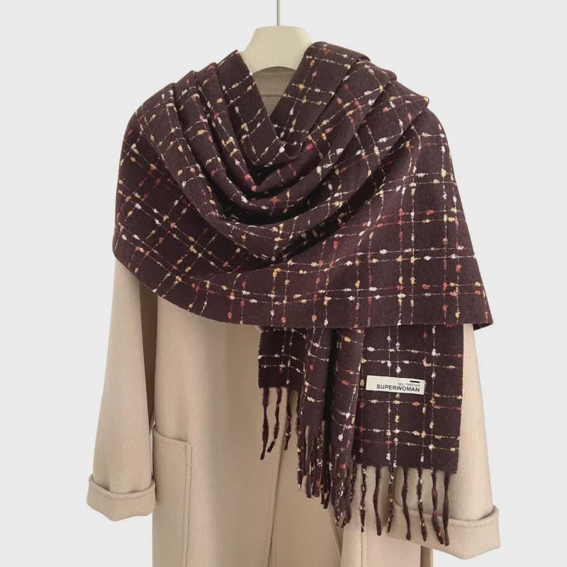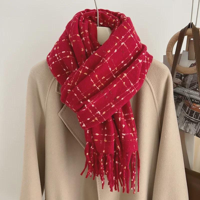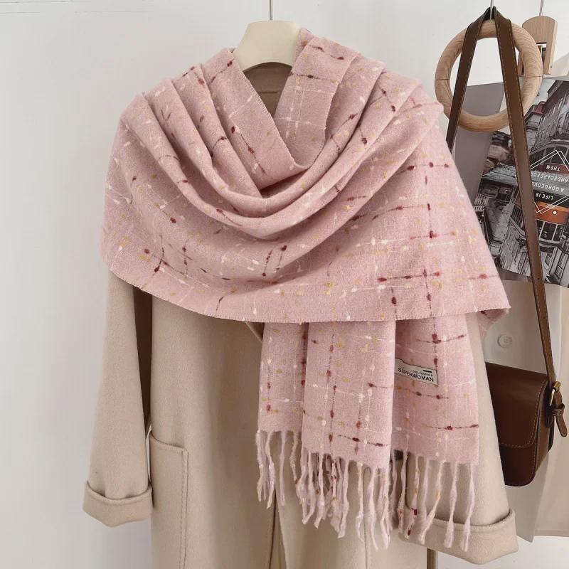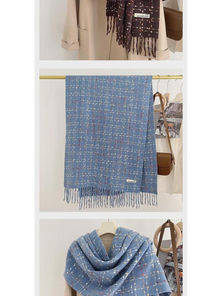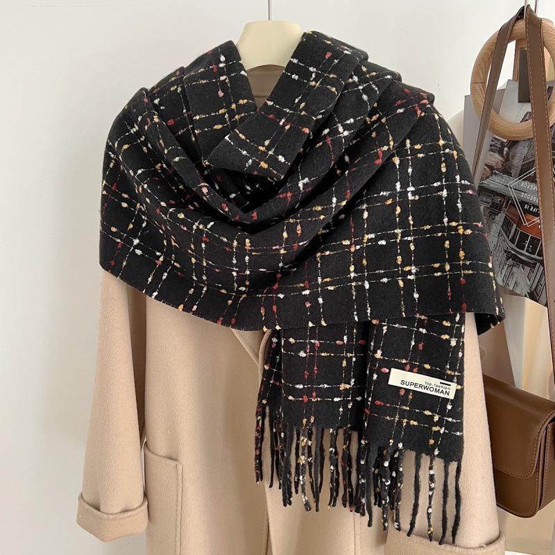 2024 Новый стиль кашемировый клетчатый шарф с кисточками для женщин, осень/зима, толстый бархатный теплый