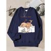 Кот, который всегда хочет спать Узор Печатный с капюшоном Простая теплая осенняя толстовка Уличные повседневные пуловеры и длинные рукава для мужчин