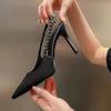 Женские серебристые туфли-лодочки на шпильке со стразами, 2023