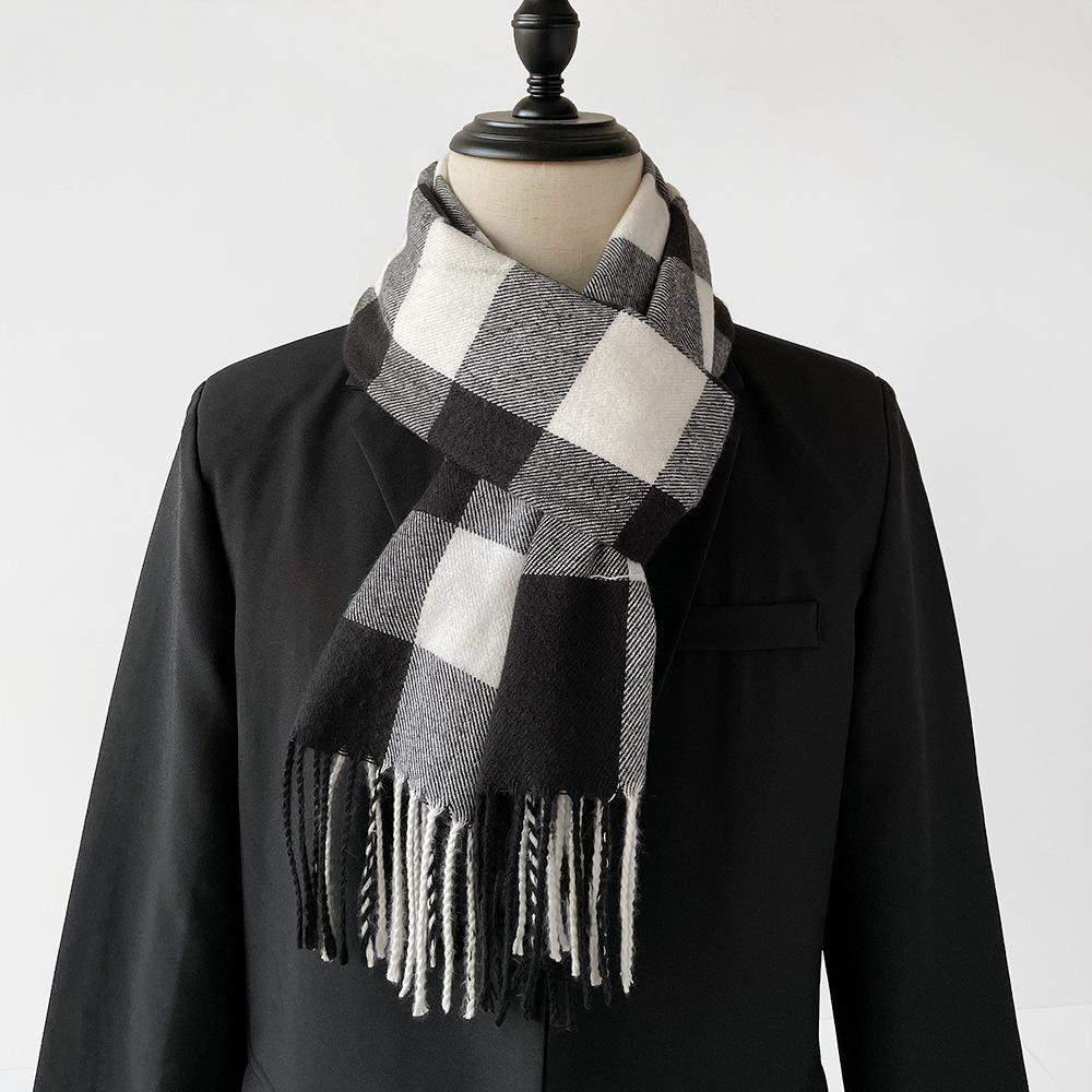 Клетчатый черно-белый теплый шарф мужской осенне-зимний шарф простой и модный британский стиль шаль из искусственного кашемира