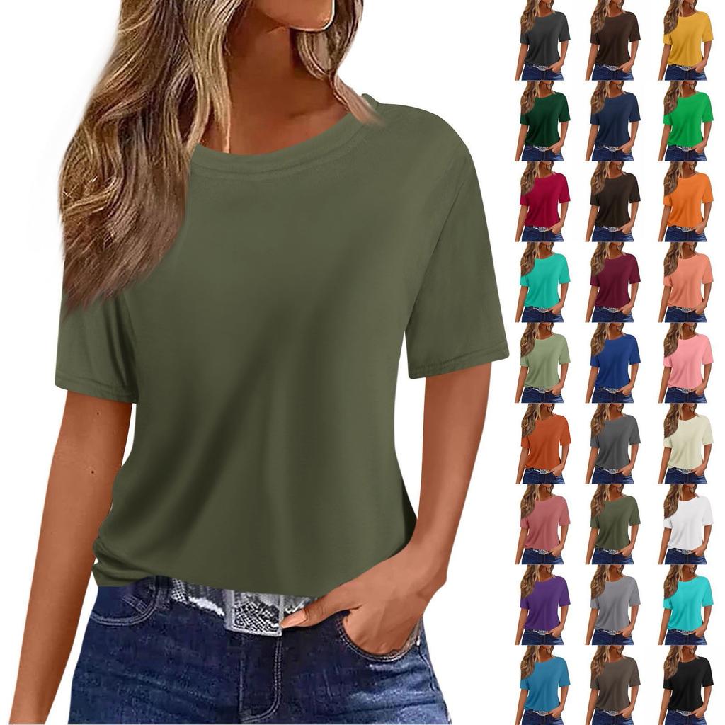 Женская свободная повседневная футболка с коротким рукавом и круглым вырезом, однотонный пуловер, топ — купить товар онлайн с бесплатной доставкой до всему миру!