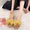 2024 летние новые водонепроницаемые тапочки с толстым дном и уклоном на каблуке, женские тапочки с бантом на высоком каблуке