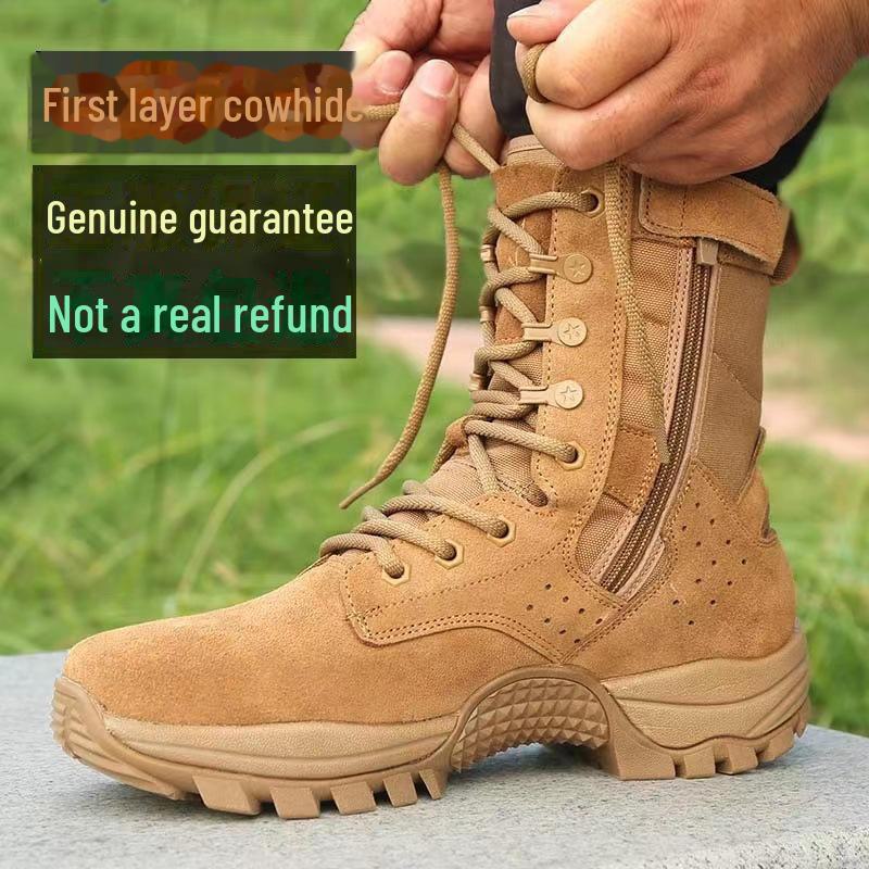 Мужские водонепроницаемые боевые тренировочные ботинки из натуральной коричневой кожи с боковой молнией — песочного цвета для активного отдыха, альпинизма и использования в пустыне. — купить товар онлайн с бесплатной доставкой по всему миру!