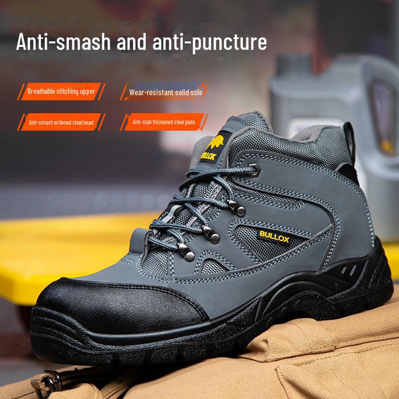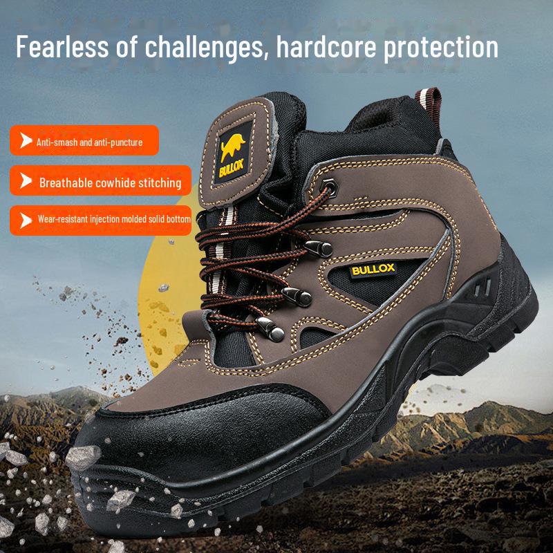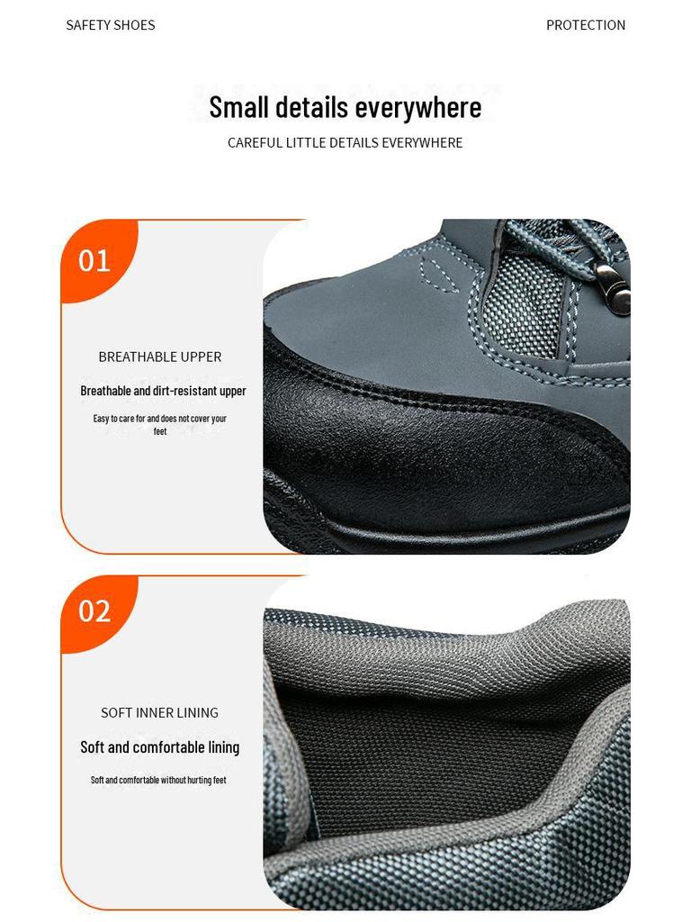 Мужские защитные рабочие ботинки со стальным носком — противоударные, противопрокольные, износостойкие, нескользящие, дезодорирующие, дышащие.