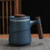 Черная керамическая чашка с деревянной ручкой, фильтр для чая, керамическая кружка, креативный офис, ретро, элегантные чашки и кружки для воды, эстетичный фарфоровый набор, подарочная коробка на день рождения
