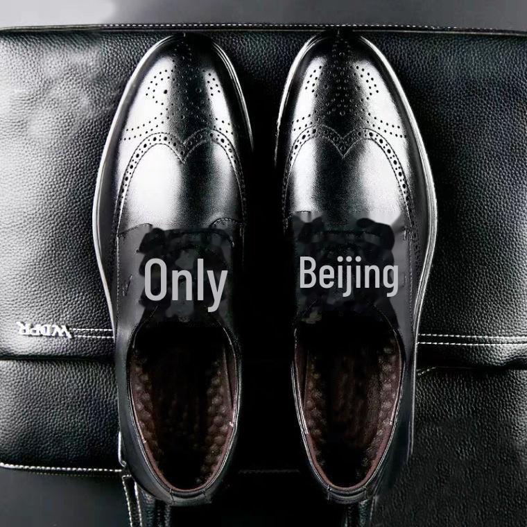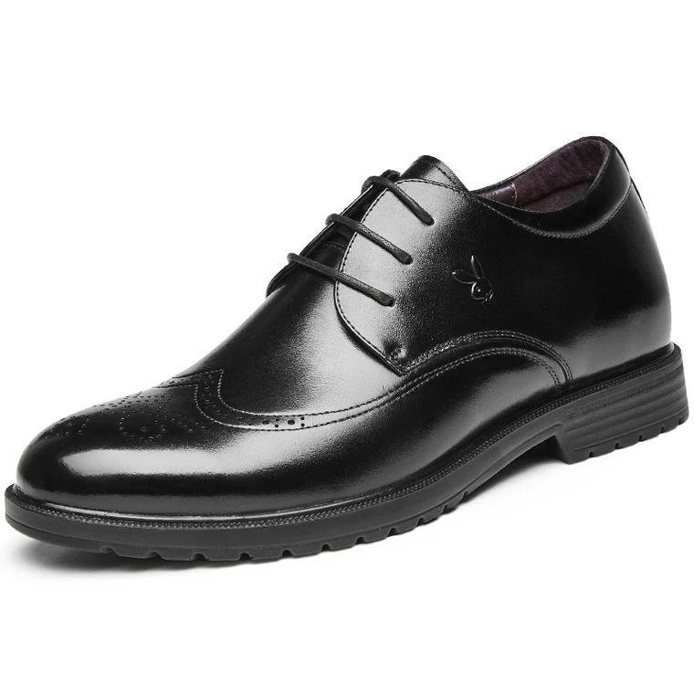 Мужские броги из кожи в британском стиле осень/зима 2024 года — теплые, с резным узором, увеличивающие рост