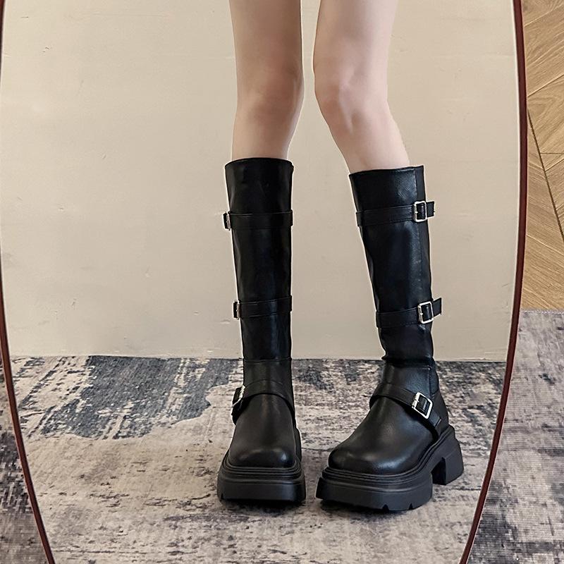 Модные ботинки с пряжкой на толстом каблуке и толстой подошвой для женщин 2024 года, новые модные ботинки Майяра в стиле рыцарских сапог