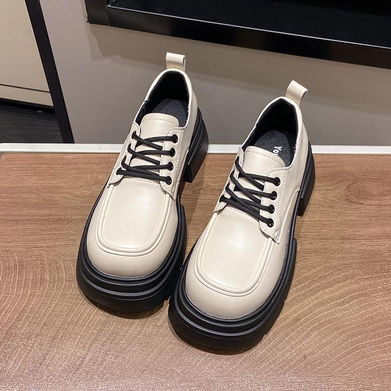Толстый каблук-платформа женские 2024 новые ретро модные темпераментные повседневные туфли на шнуровке маленькие кожаные туфли прилив
