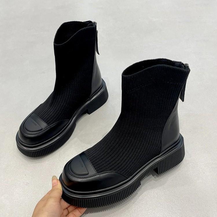 Сапоги женские вязаные дышащие эластичные 2024 осень и зима новые толстые каблуки толстая подошва модные сапоги тонкие носки сапоги прилив