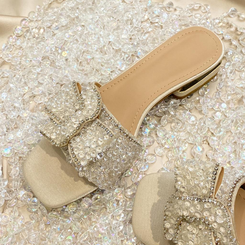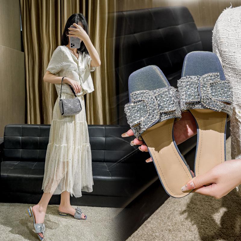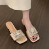 2024 новые летние туфли на квадратном каблуке, модные женские туфли на плоской подошве со стразами, однотонные яркие туфли с бриллиантами