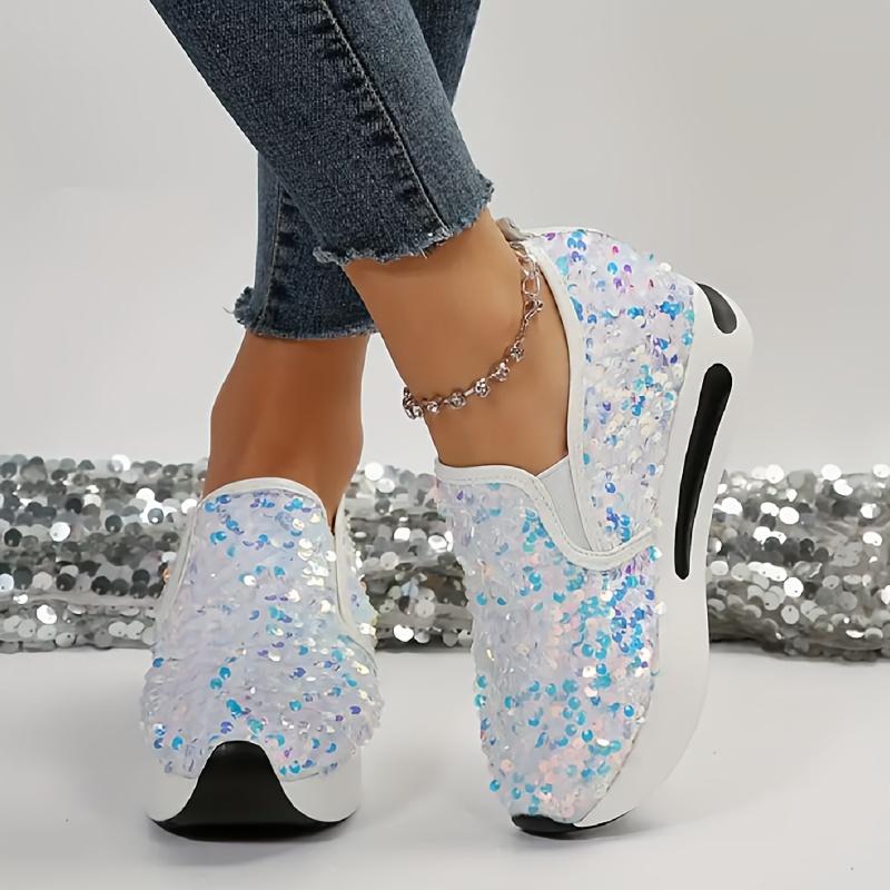Кроссовки женские Allover Sequin Platform Slip-On Muffin Tennis Flat Женские спортивные туфли-лоферы Slip-on Platform Elegant Shoes — купить товар онлайн с бесплатной доставкой по всему миру!