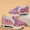 Кроссовки женские Allover Sequin Platform Slip-On Muffin Tennis Flat Женские спортивные туфли-лоферы Slip-on Platform Elegant Shoes