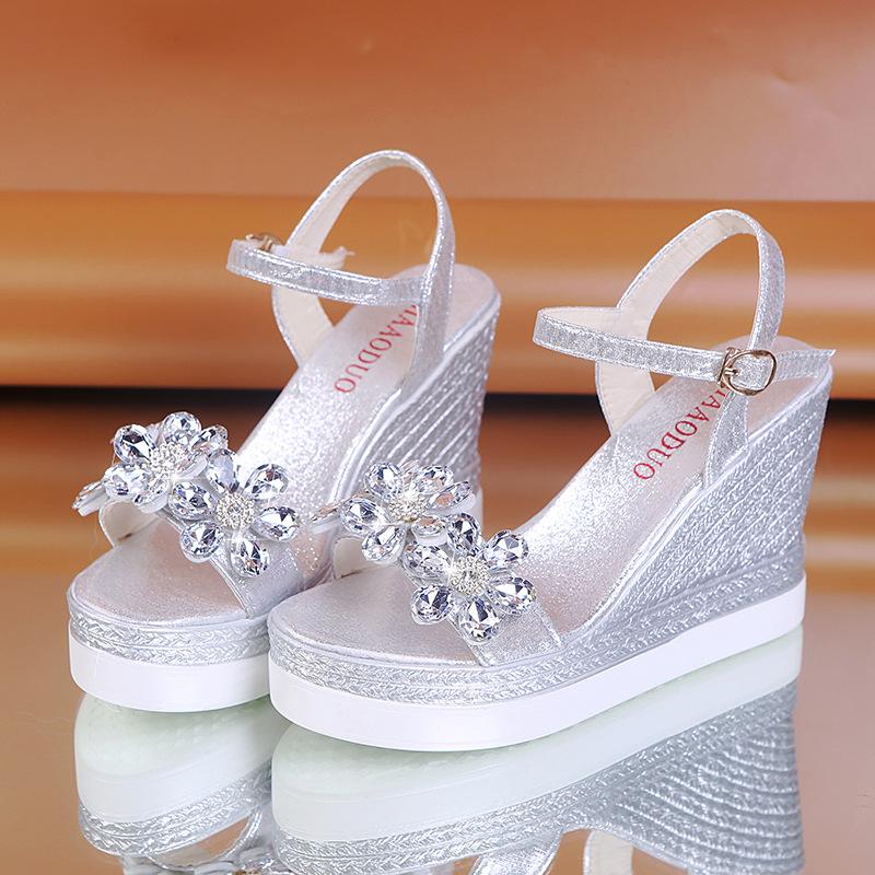 Босоножки на танкетке женские летние 2024 года, новые внутренние усиливающие яркие бриллиантовые рыбьи клювы, водонепроницаемые, на высоком каблуке, с пряжкой, женские туфли прилив — купить товар онлайн с бесплатной доставкой до всему миру!