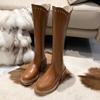 Флисовые ботинки женские 2024 зима новые высокие ботфорты на толстом каблуке ретро ботинки до колена женские ботинки