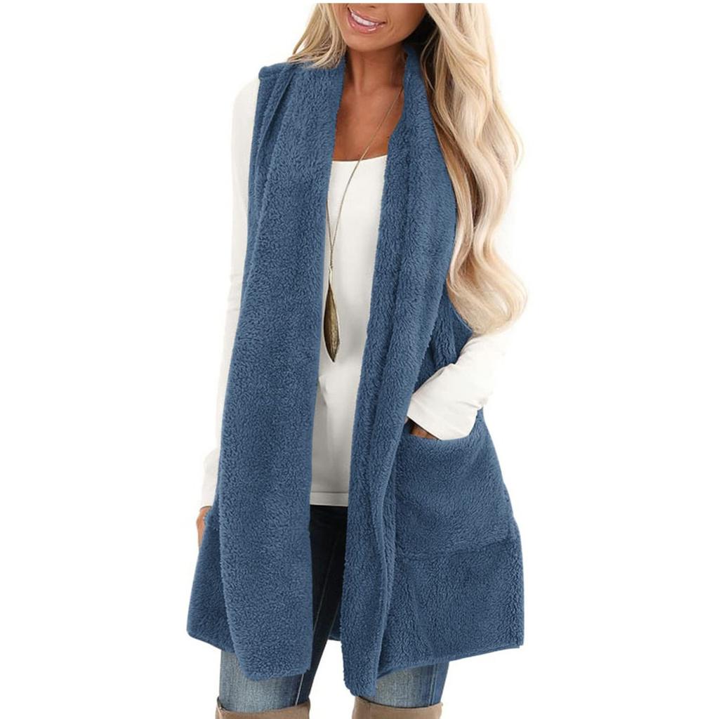 Женское модное однотонное повседневное пальто из плюшевого жилета с карманами
