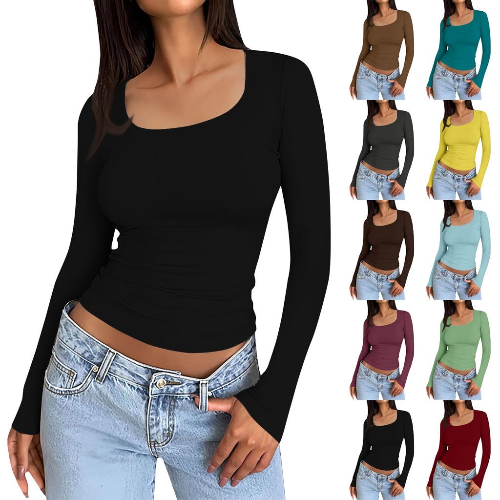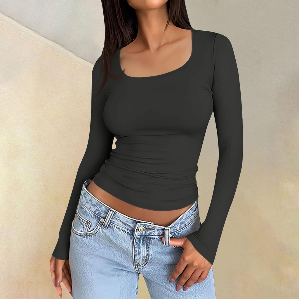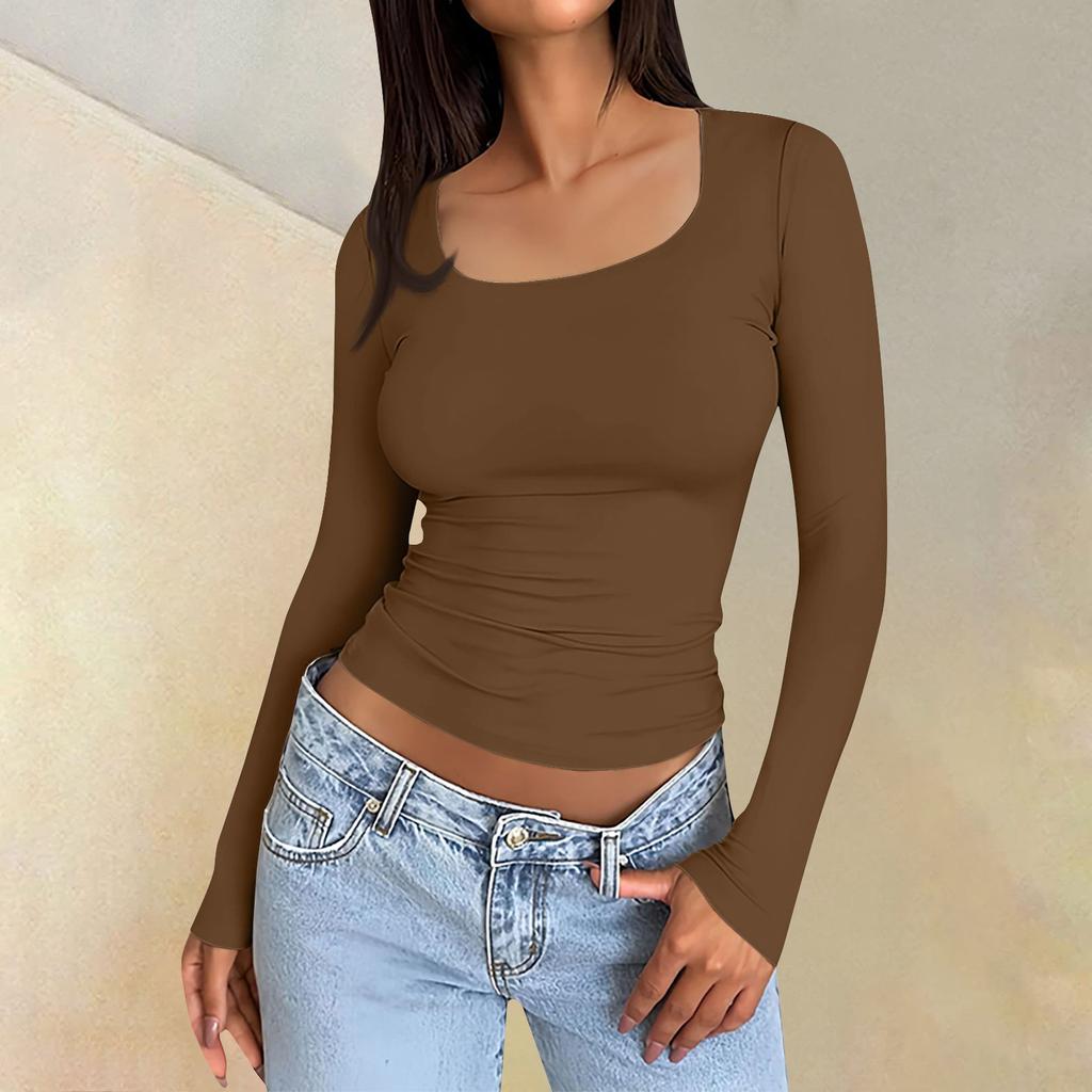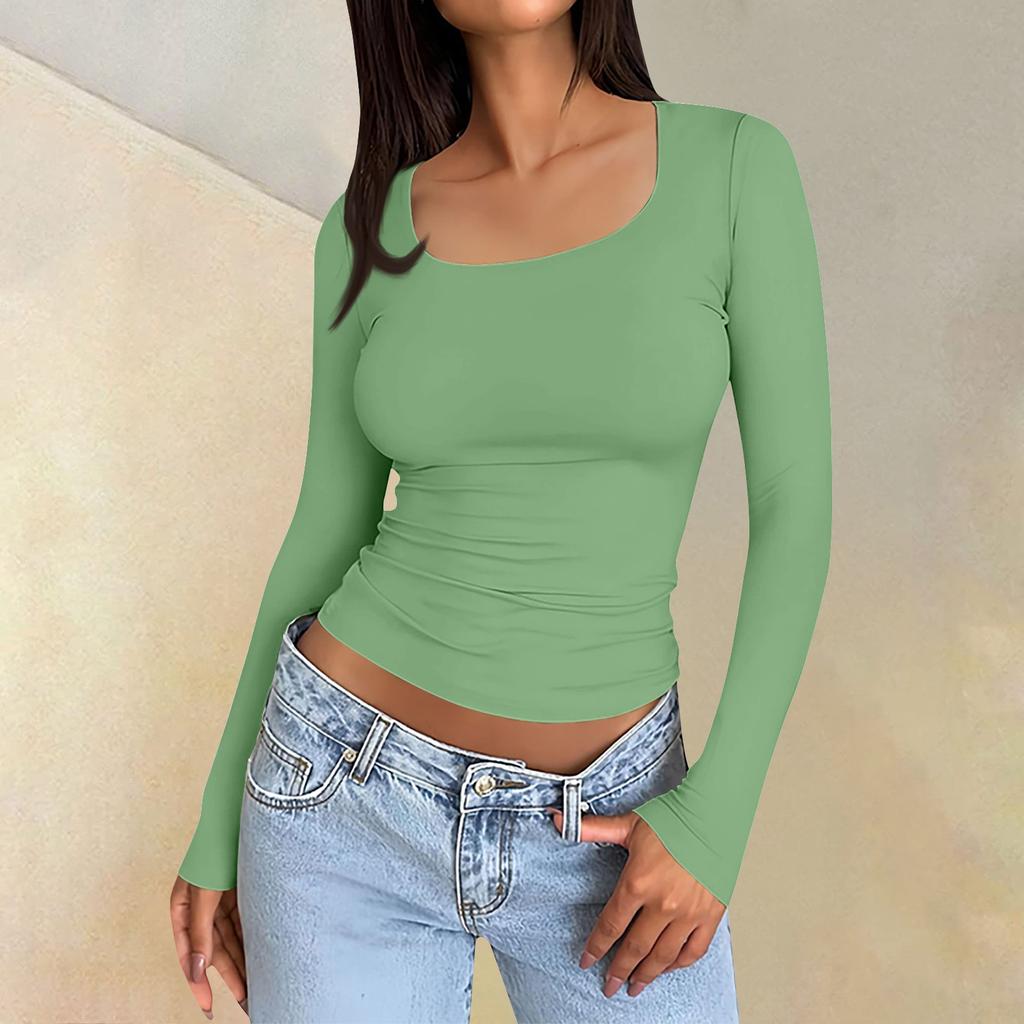 Женская повседневная модная однотонная футболка с длинным рукавом и квадратным вырезом, топ, пуловер