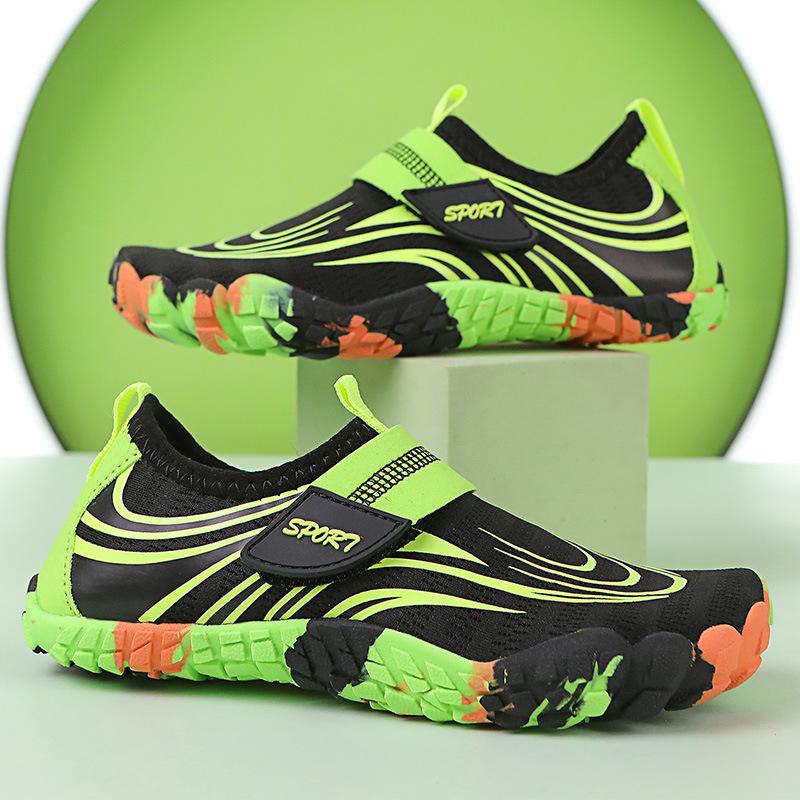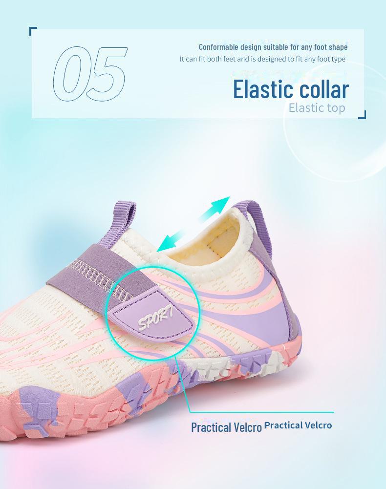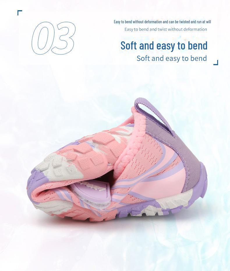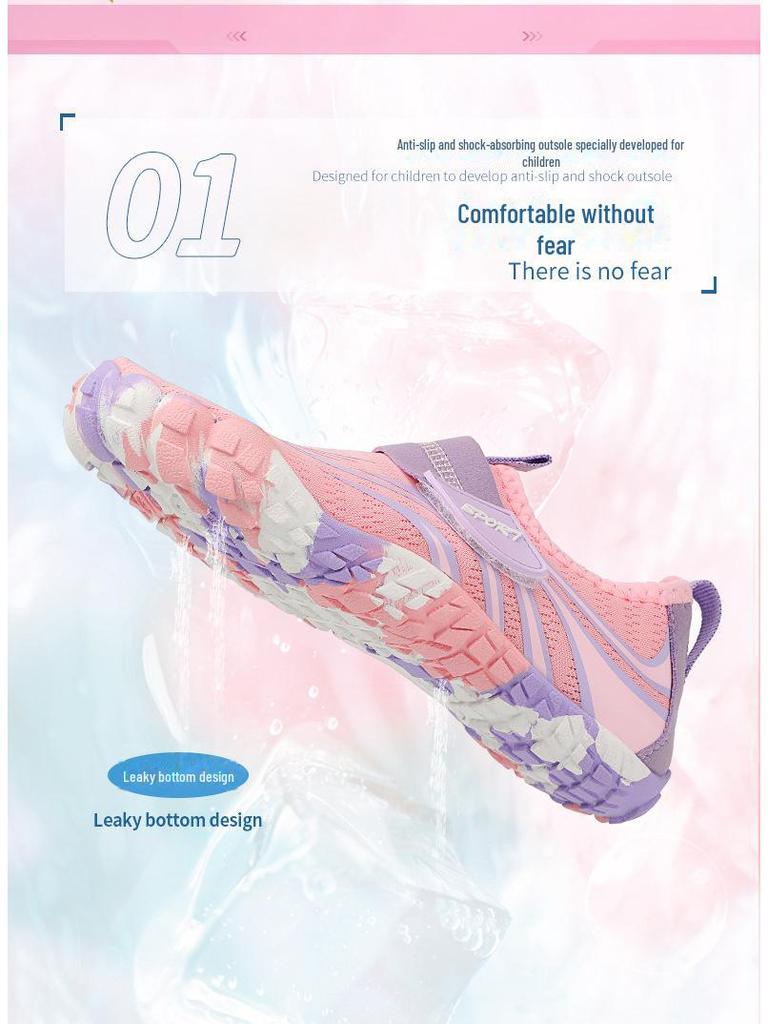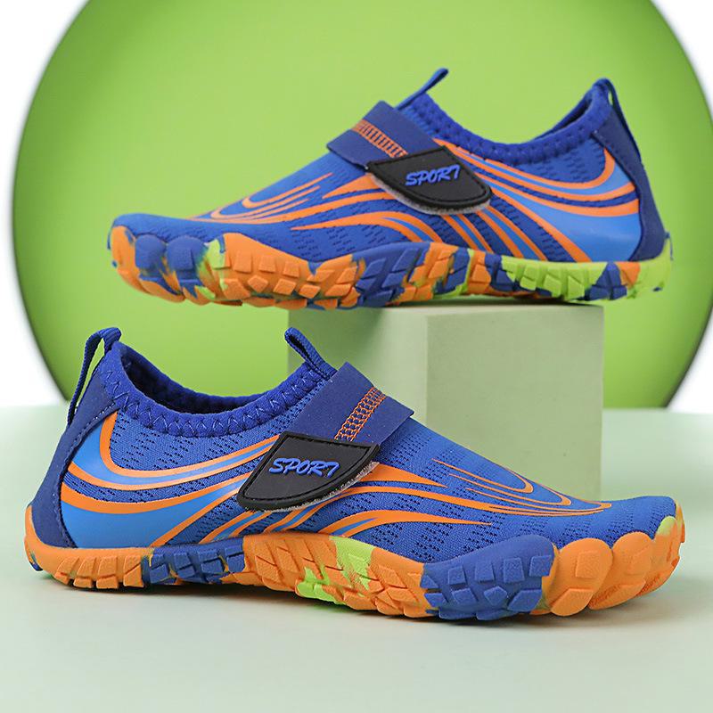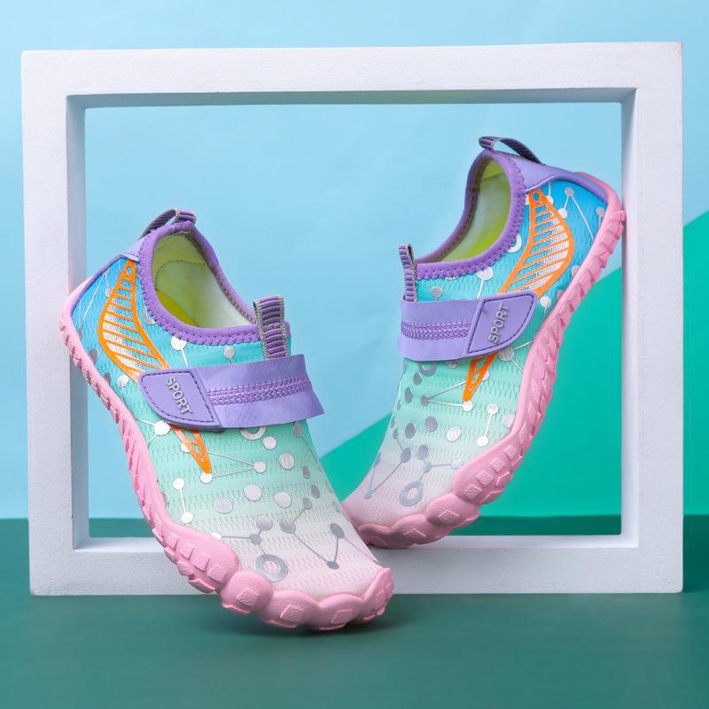 Эти универсальные водные туфли созданы специально для активных детей и обеспечивают комфорт и безопасность во время различных водных развлечений.. Благодаря дышащему сетчатому верху эти кроссовки обеспечивают отличную вентиляцию и быстрое высыхание, сохраняя ноги в комфорте и сухости.. Сетчатая подкладка улучшает циркуляцию воздуха, обеспечивая дополнительный комфорт даже при длительном ношении.. Эти туфли с прочной резиновой подошвой обеспечивают надежное нескользящее сцепление на мокрой поверхности, что делает их идеальными для хождения вброд, дайвинга, плавания, рыбалки и пляжного отдыха.. Эти водные туфли идеально подойдут юным любителям приключений, которые любят исследовать как воду, так и ее поверхность.