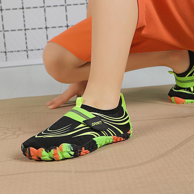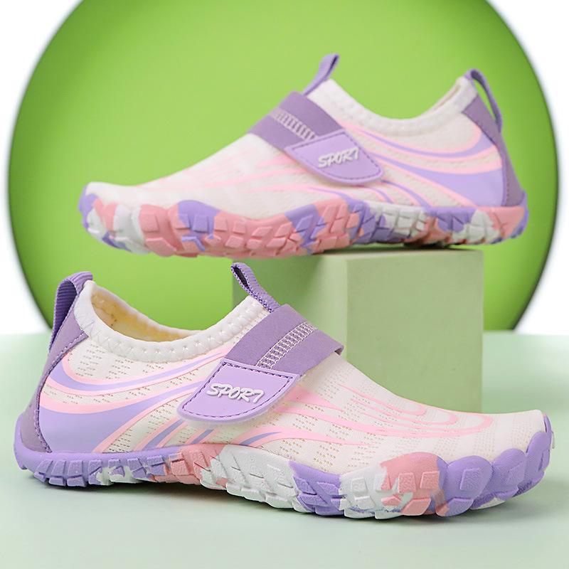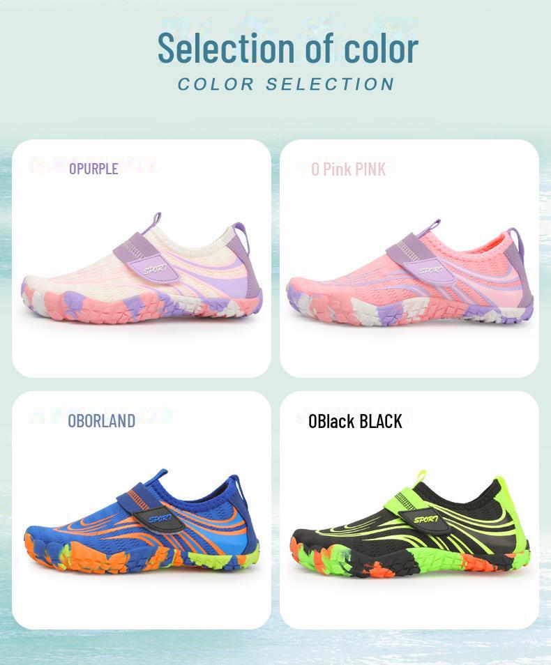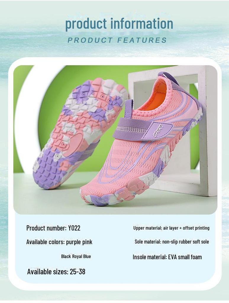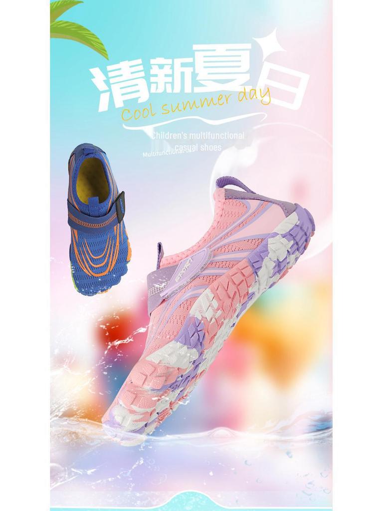 Эти универсальные водные туфли созданы специально для активных детей и обеспечивают комфорт и безопасность во время различных водных развлечений.. Благодаря дышащему сетчатому верху эти кроссовки обеспечивают отличную вентиляцию и быстрое высыхание, сохраняя ноги в комфорте и сухости.. Сетчатая подкладка улучшает циркуляцию воздуха, обеспечивая дополнительный комфорт даже при длительном ношении.. Эти туфли с прочной резиновой подошвой обеспечивают надежное нескользящее сцепление на мокрой поверхности, что делает их идеальными для хождения вброд, дайвинга, плавания, рыбалки и пляжного отдыха.. Эти водные туфли идеально подойдут юным любителям приключений, которые любят исследовать как воду, так и ее поверхность.