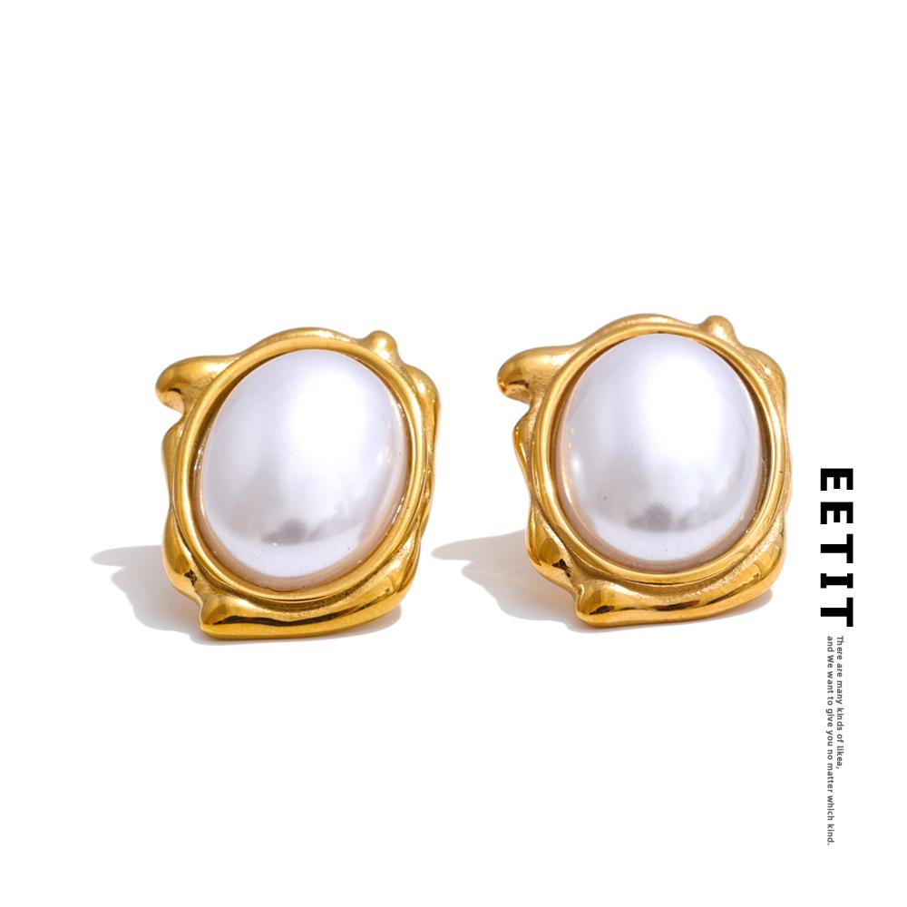 Eetit Элегантные круглые серьги-гвоздики с имитацией жемчуга для женщин, позолоченные 18-каратным золотом, нержавеющая сталь, винтажные украшения, новые