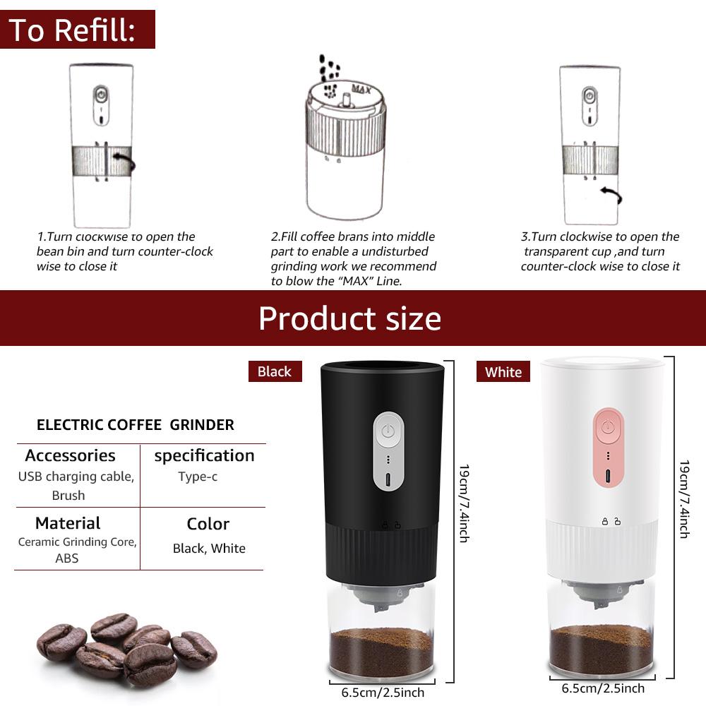 Портативная кофемолка, электрическая USB перезаряжаемая домашняя уличная блендеры, профессиональная регулируемая помолка кофейных зерен для кухни