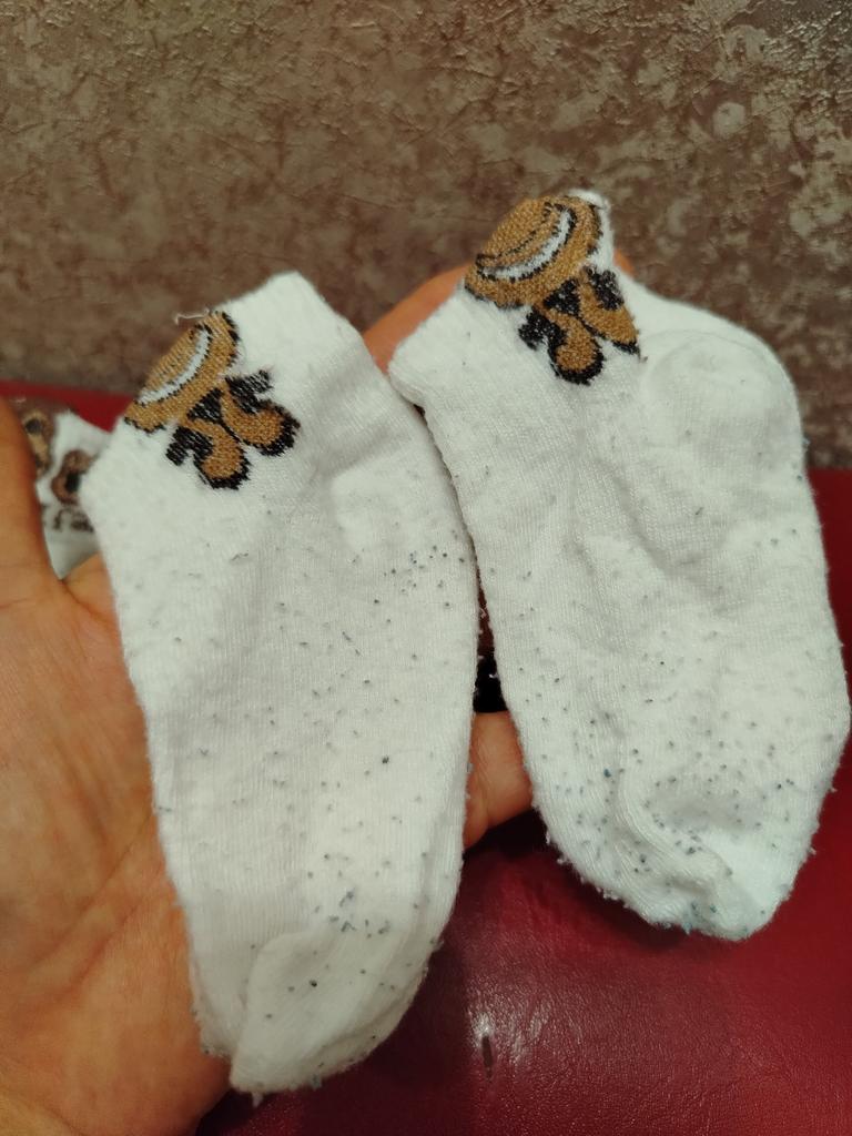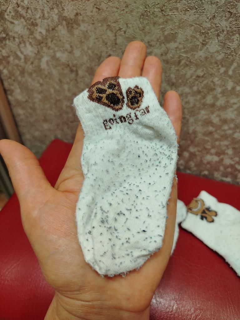 Носки ужасного качества, сразу превращаются в катышки, и вот моя ладонь стали размером на годик ребёнку, деньги на ветер, выкинула всю упаковку