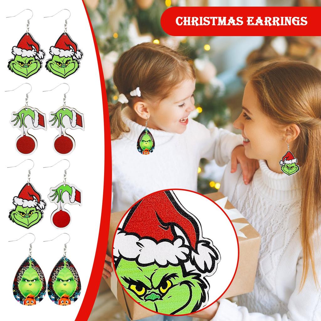 Рождественские деревянные серьги Зеленые волосы Рождественский подарок Висячие деревянные серьги Серьги
