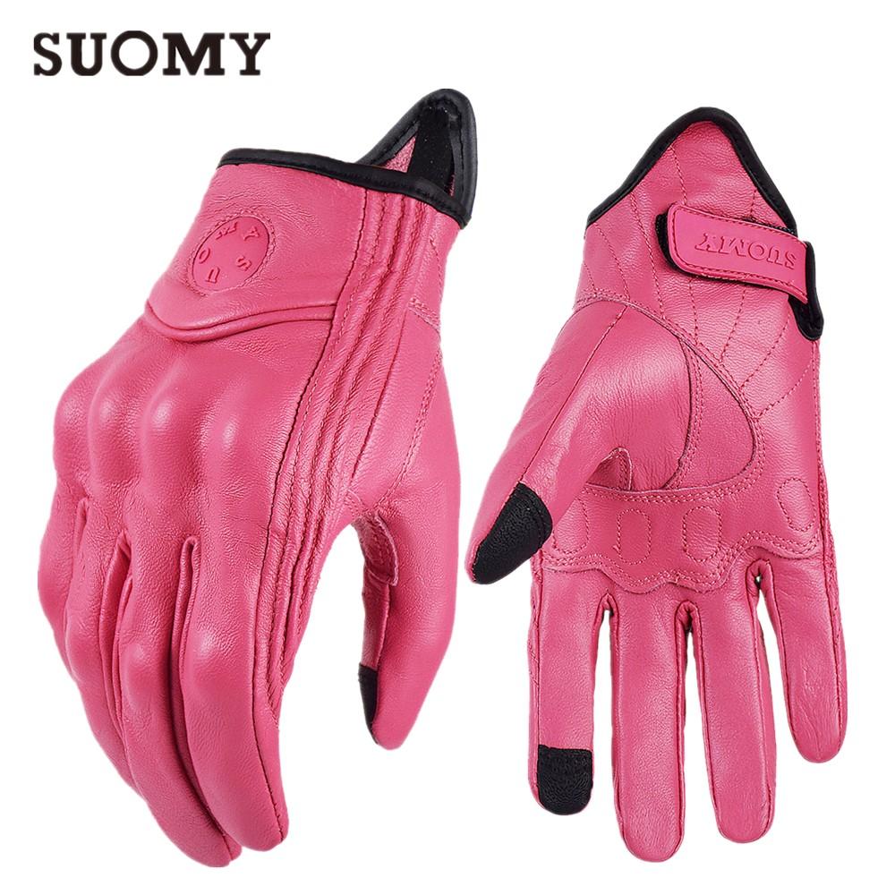 SUOMY Женские мотоциклетные перчатки из розовой кожи Натуральная кожа Перфорированные Женские мотоциклетные перчатки для езды Сенсорный экран Moto Guantes