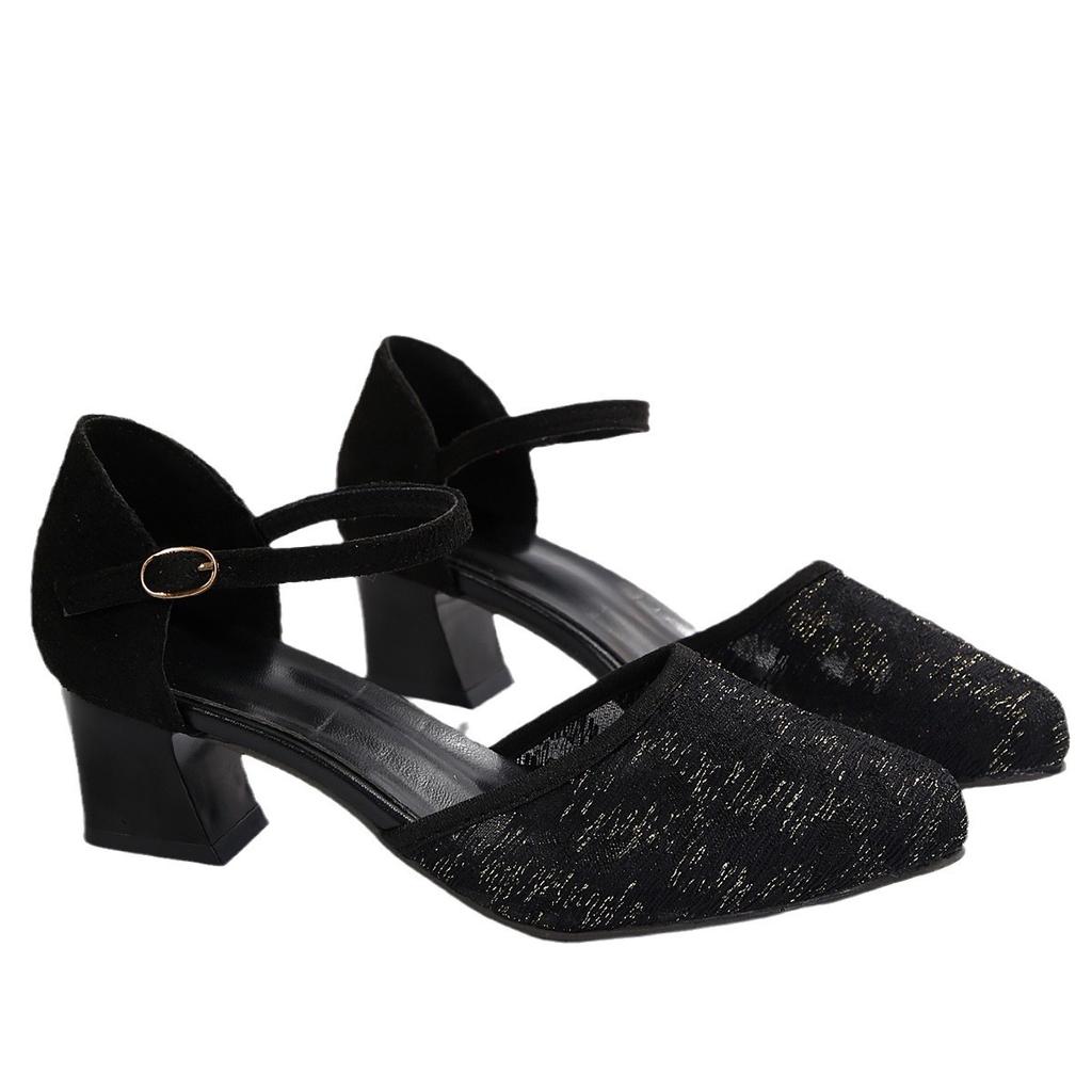 Зрелые толстые каблуки, высокие каблуки, односложные сандалии с пряжкой, женские туфли с сумкой на голову, полые каблуки, рабочая обувь