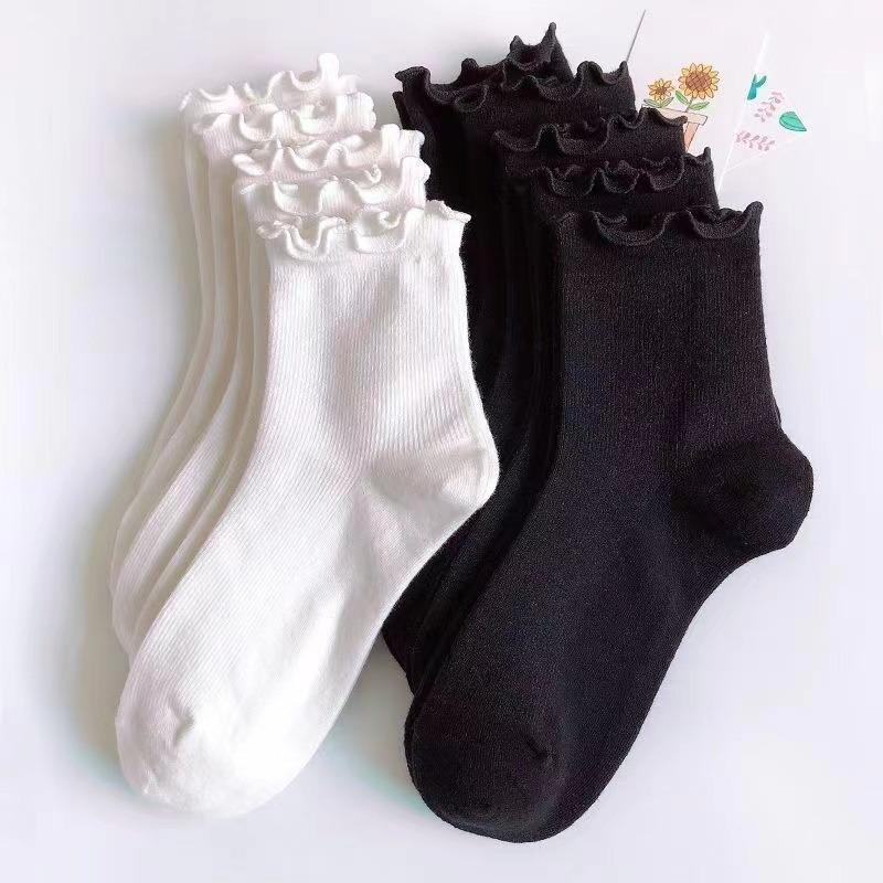 5 пар хлопковых носков с оборками для женщин, милые кавайные корейские носки для девочек, весна, черные, белые, средняя трубка, японские носки — купить товар онлайн с бесплатной доставкой по всему миру!