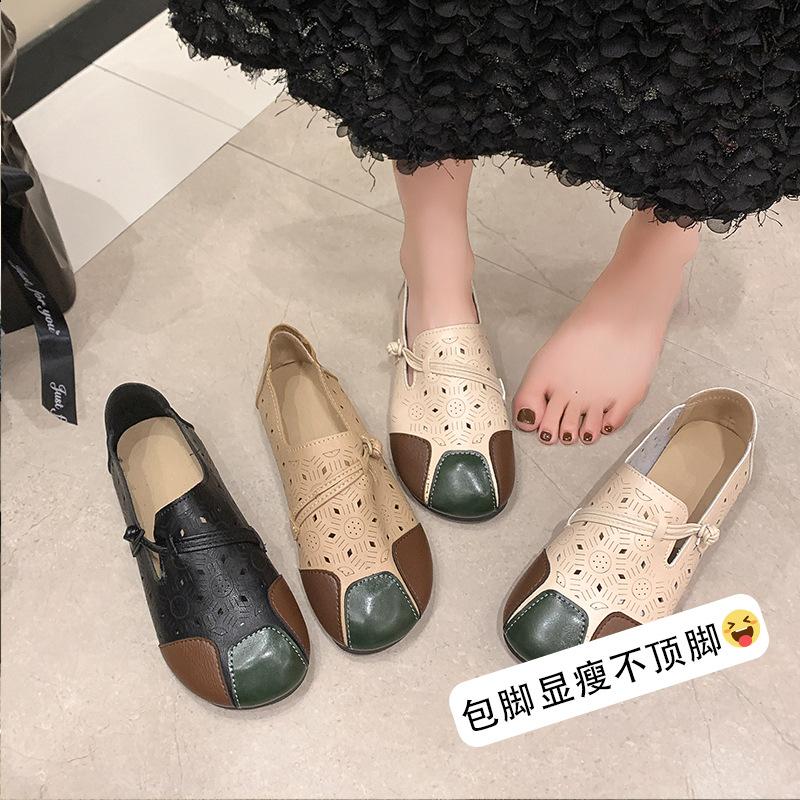 2024 летние новые ретро этнические туфли Doudou большого размера женские туфли на плоской подошве с одной педалью, подходящие по цвету женские мокасины