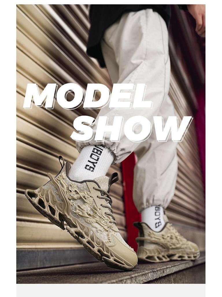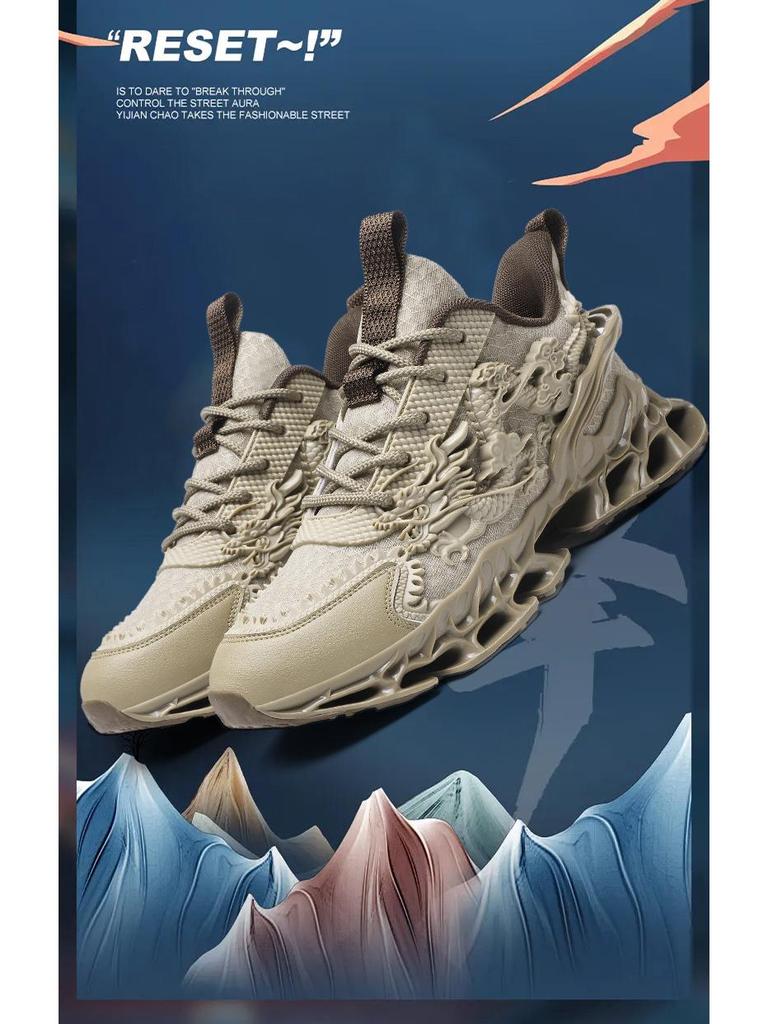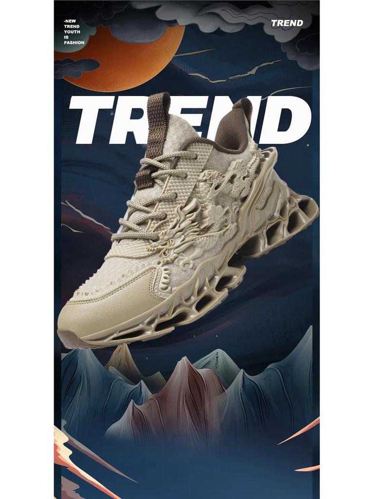 Ощутите стиль с этими трендовыми мужскими кроссовками для повседневного спорта. Эти туфли с характерным дизайном в виде вырезанного дракона сочетают в себе моду и функциональность.. Верх изготовлен из дышащей сетчатой ткани, обеспечивающей превосходную вентиляцию и комфорт для любой повседневной прогулки.. Подошва изготовлена из прочного термополиуретана, обеспечивающего отличное сцепление и устойчивость, а сетчатая подкладка обеспечивает плотную посадку.. Кроме того, стелька из ЭВА обеспечивает исключительную амортизацию, что делает эти кроссовки идеальным выбором для повседневной носки, позволяя вам уверенно преодолевать любые приключения.