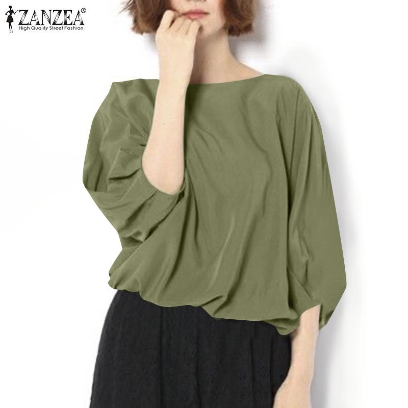 ZANZEA Женская повседневная блузка с круглым вырезом и рукавом 3/4 — купить товар онлайн с бесплатной доставкой до всему миру!