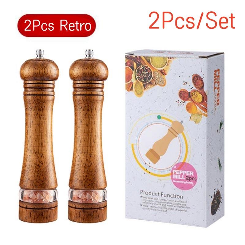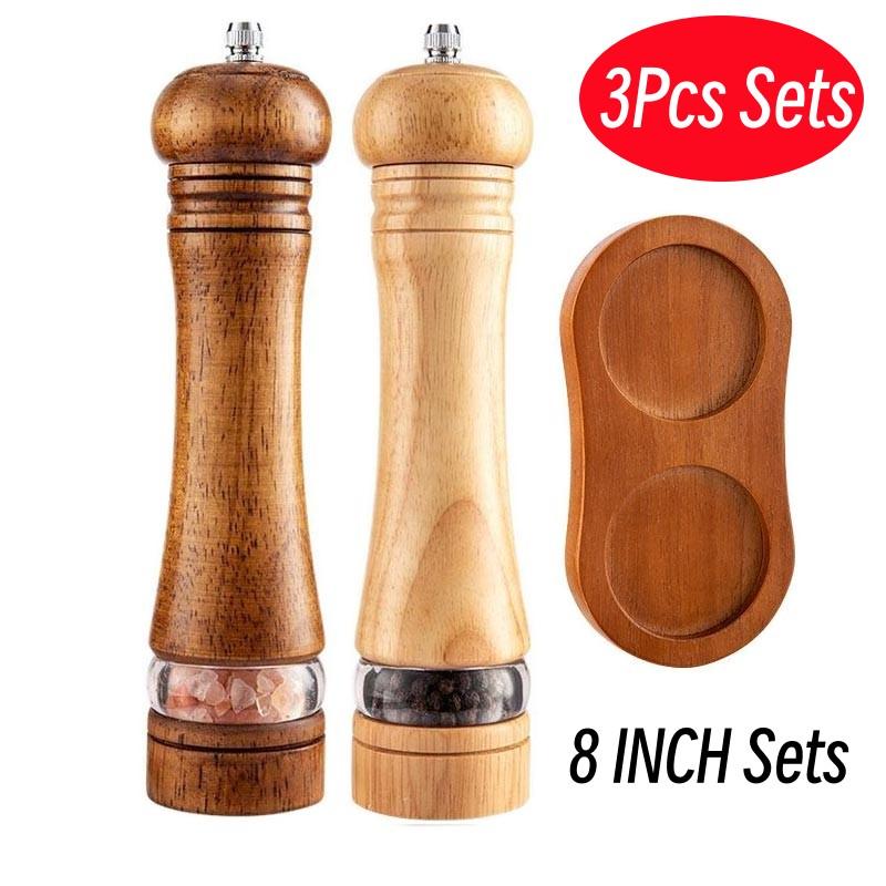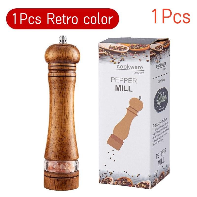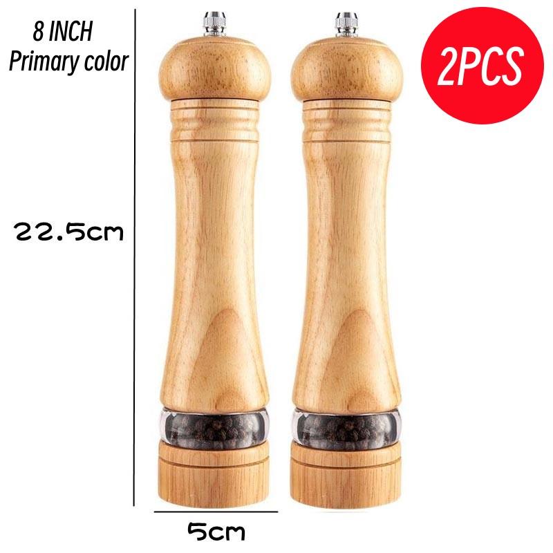 8-дюймовая ручная деревянная мельница для перца, прочная мельница для соли и перца с керамическими стержнями для помола, регулируемая степень помола для соли и специй,