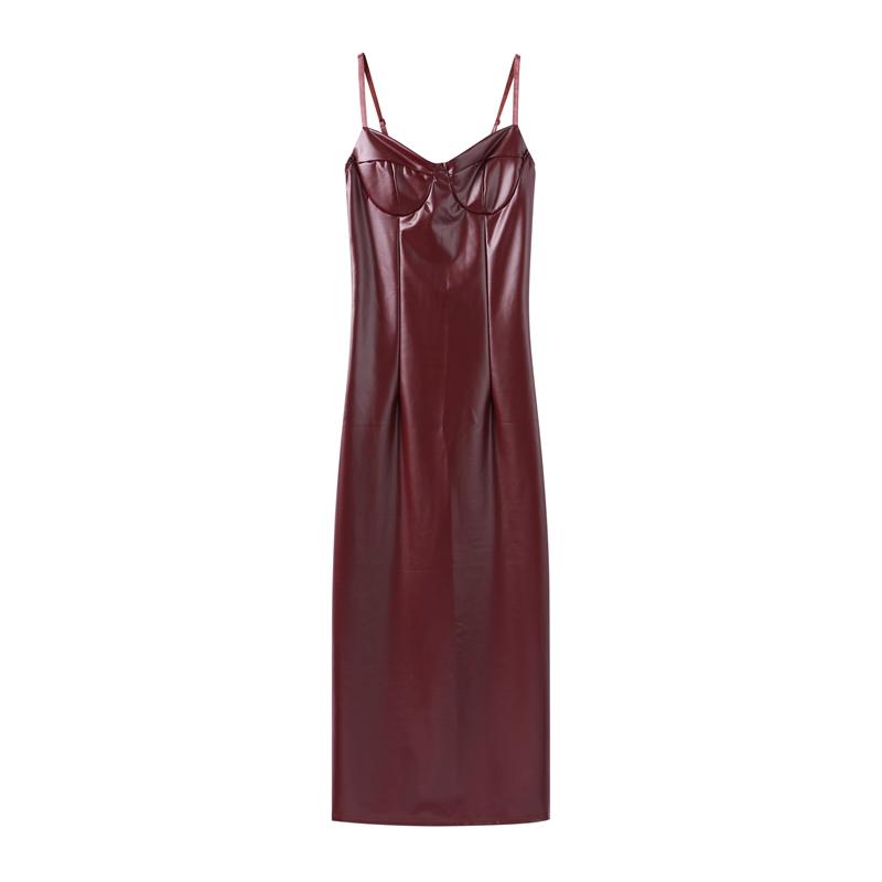 Женское сексуальное платье с открытой спиной из тонкой кожи на бретельках, модное платье без рукавов с застежкой-молнией, длинное платье на бедрах, вечернее платье