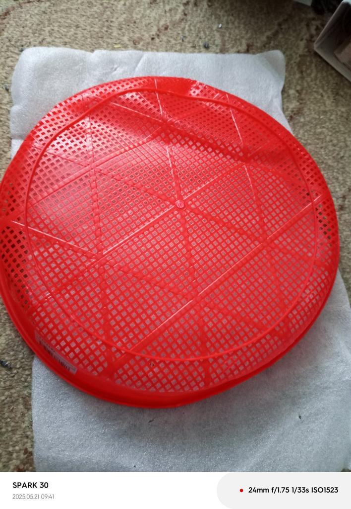 Размер 35 см в диаметре. В дороге помяли, но не сломали. Очень прогодится на даче.