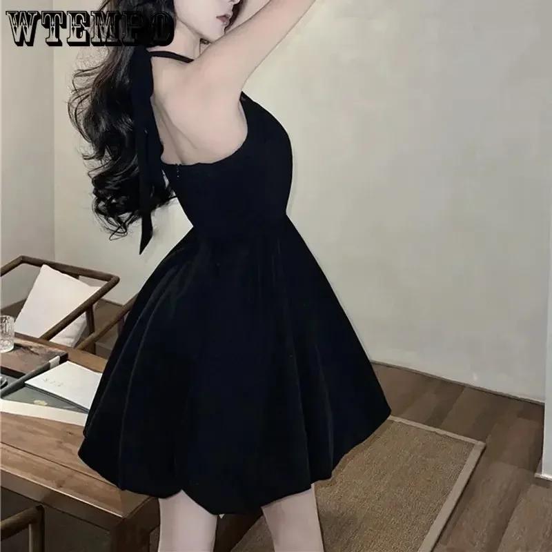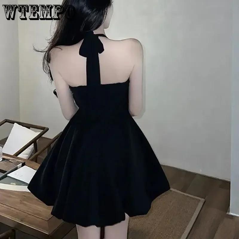 WTEMPO Черное платье без рукавов, женское летнее однотонное модное платье в Корейском стиле с лямкой на шее Y2K, повседневное элегантное, горячее, милое, новые мини-платья
