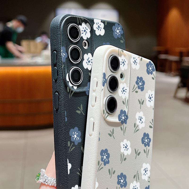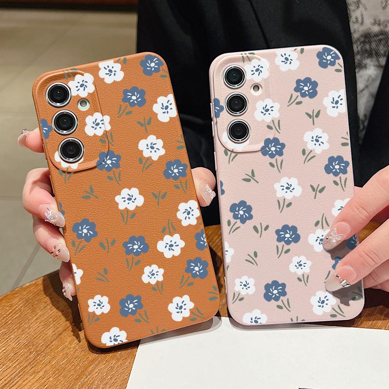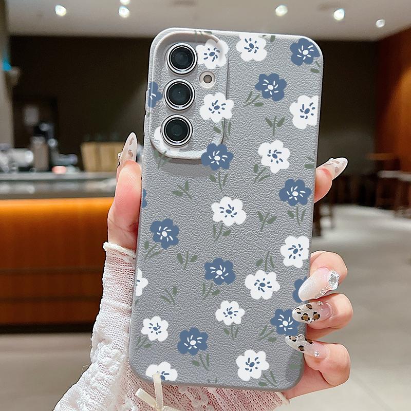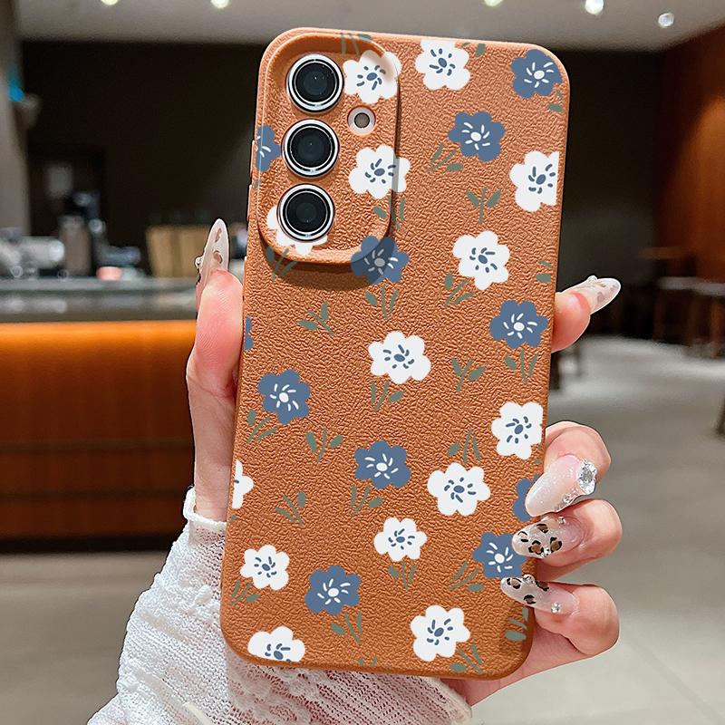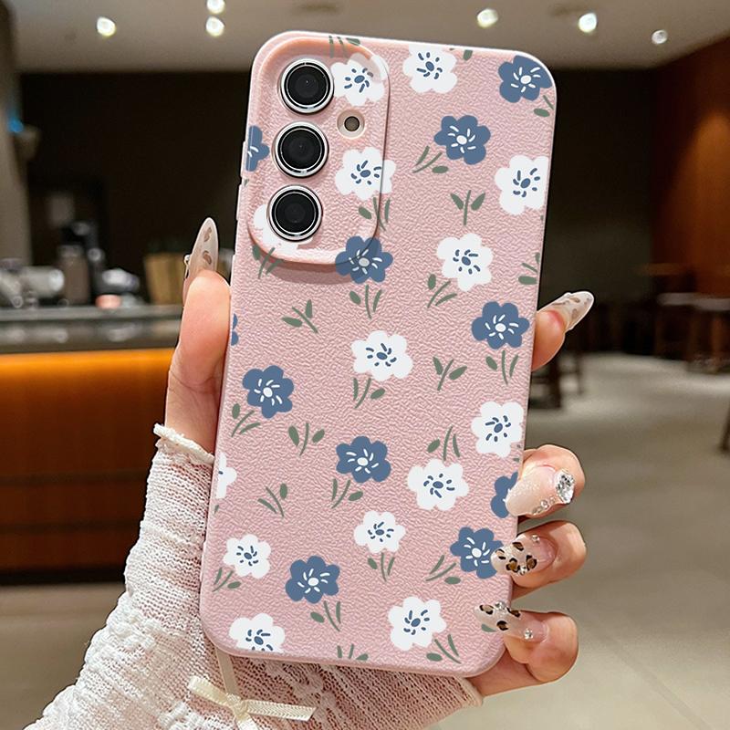 Тонкий матовый чехол из ТПУ с цветочным принтом для Samsung S25 Ultra S24 FE S23 S22 A16 A15 A56 A55 A36 A35, кожаная текстура, мягкий, ударопрочный, однотонный чехол для телефона