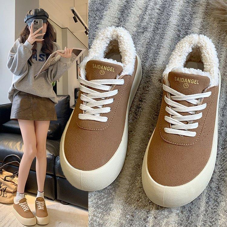 Маленькие белые туфли на толстой подошве, женские, новинка 2024 года, обувь из овечьей шерсти, повседневная обувь из бархата, теплая спортивная обувь из хлопка