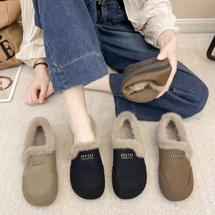 Туфли Doudou из бархата с одной педалью в стиле ретро, женские, новые, нескользящие, с мягкой подошвой, повседневные, теплые, хлопковые туфли 2024 года