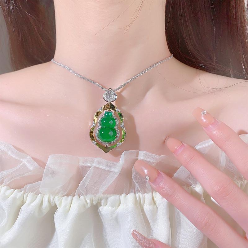 Ювелирные изделия тыква зеленый халцедон белый халцедон ожерелье кулон новый китайский ретро национальный стиль ожерелье безопасная тыква